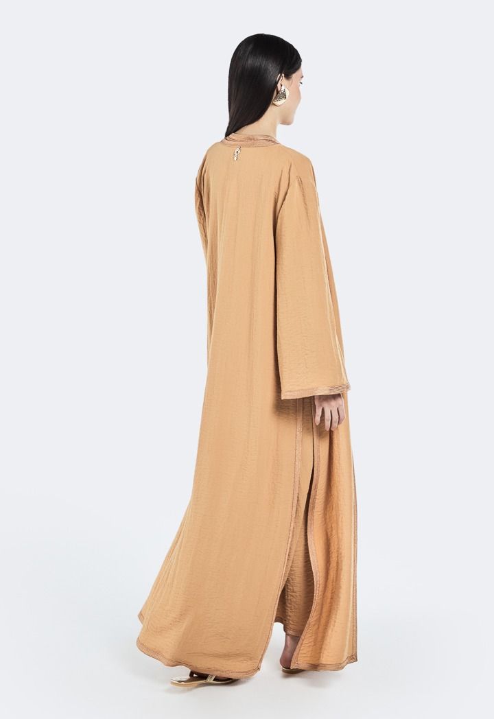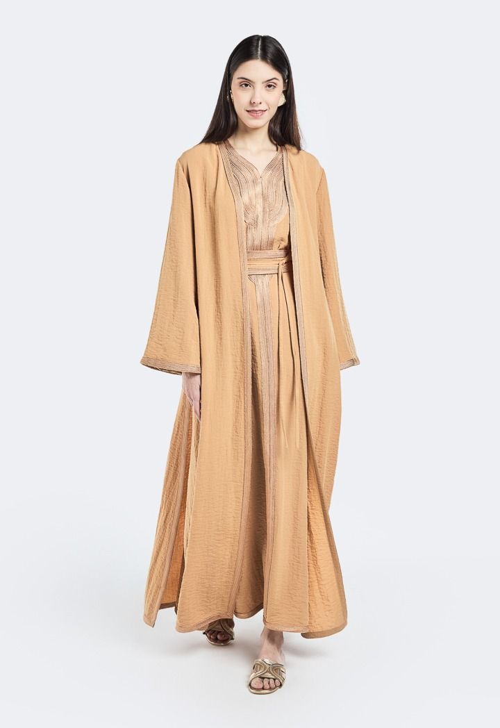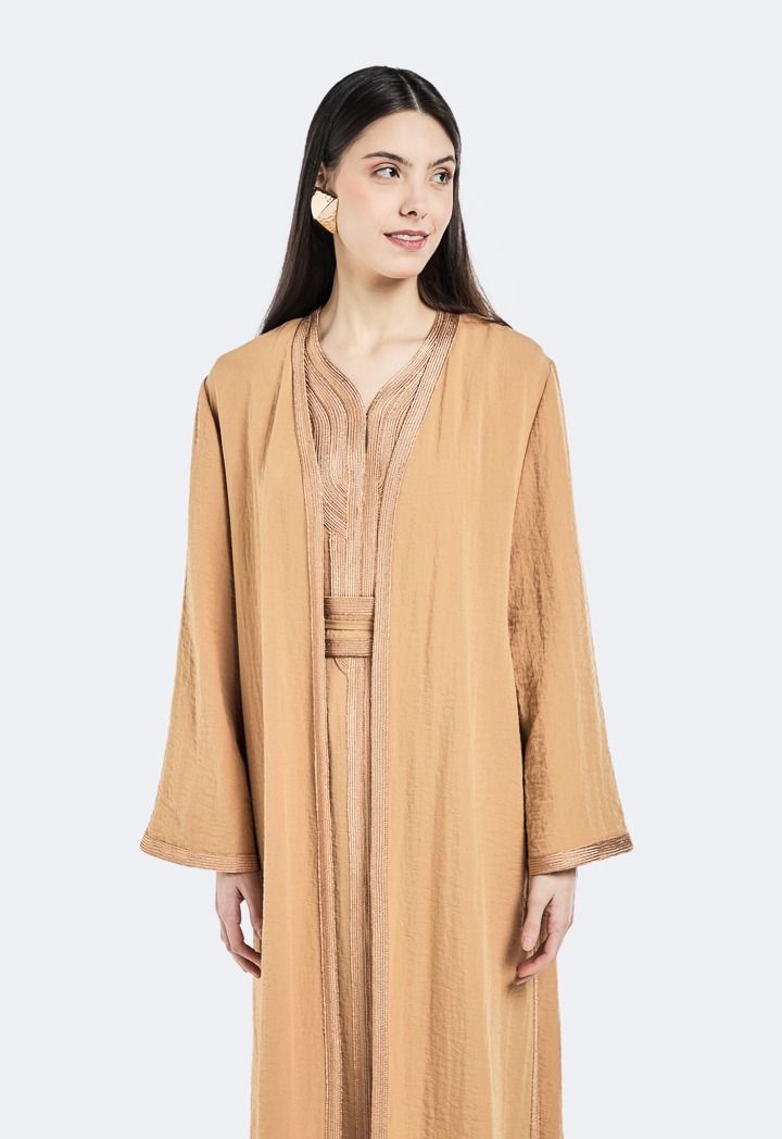 This crinkled abaya, a masterpiece of delicate artistry, is a must-have for the discerning woman. This abaya offers a touch of ethereal elegance. Consider pairing it with statement earrings for a touch of glamorous contrast.
