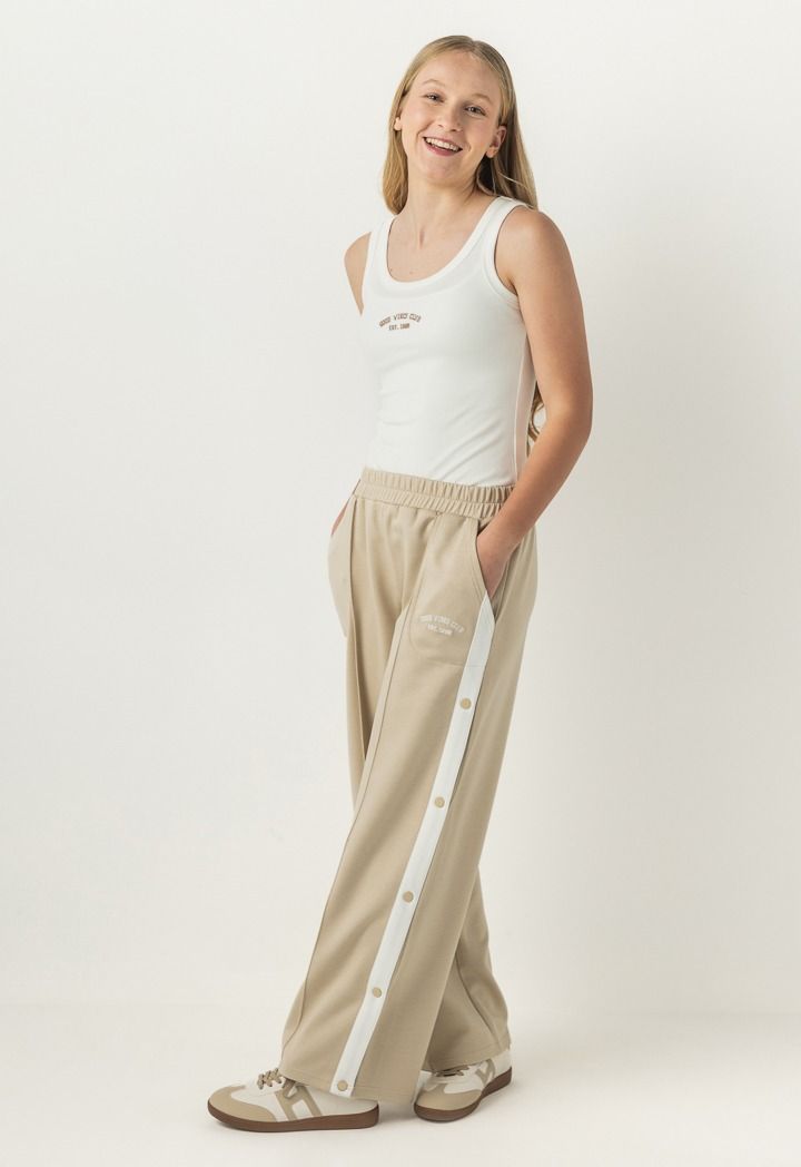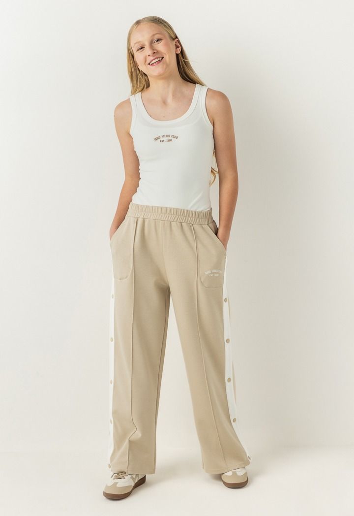 A comfortable pair of sweatpants that features a contrast side snap buttons design.