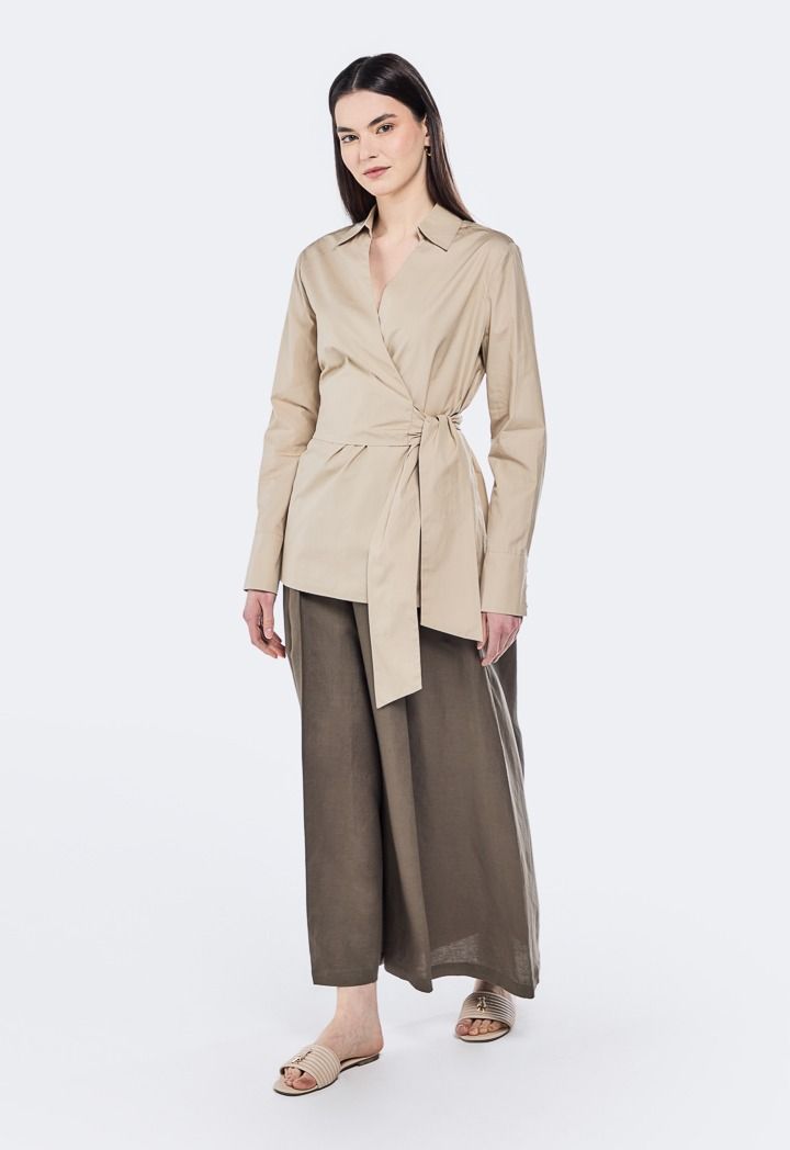 A sophisticated desk-to-dinner style featuring a contemporary tie knot detail. This shirt will become your new wardrobe favorite.