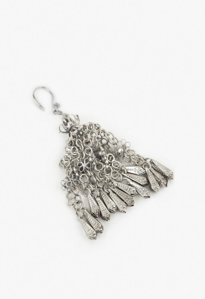 Invest in this pair of earrings that feature a silver bell tussles design and hook closure.