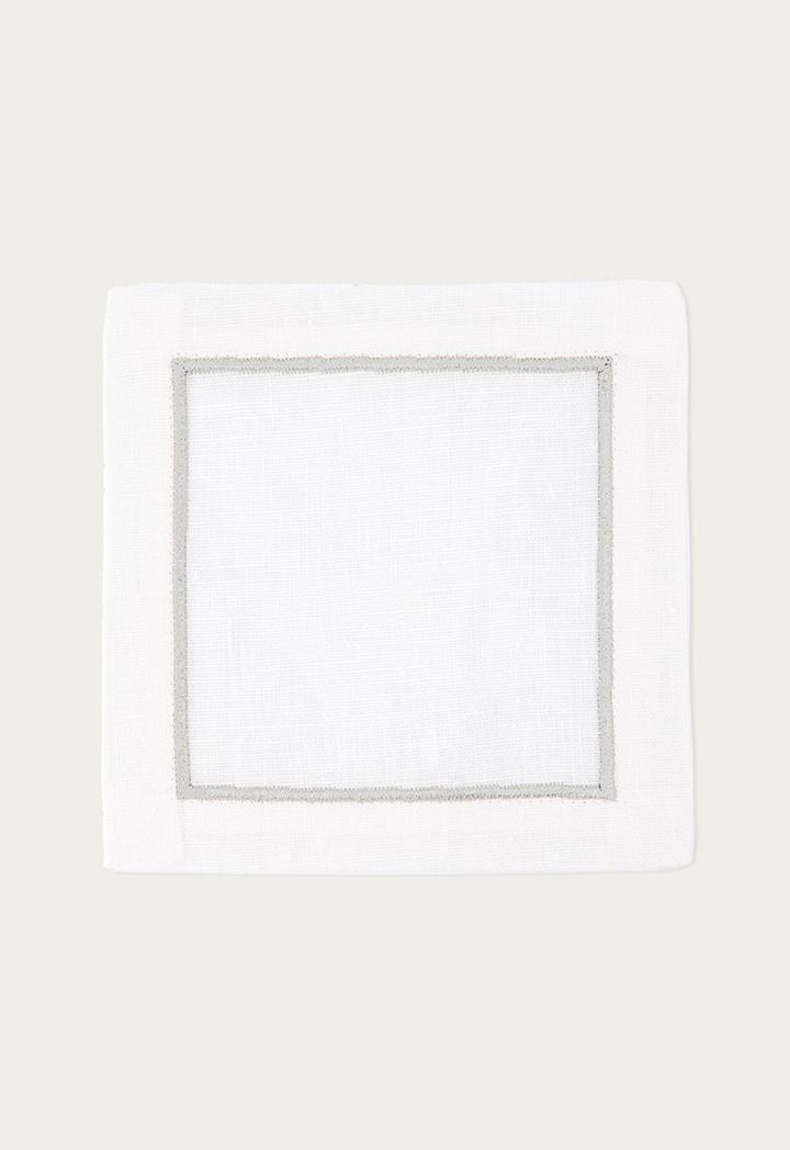 Silver Embroidered Coaster Set Of 6 |