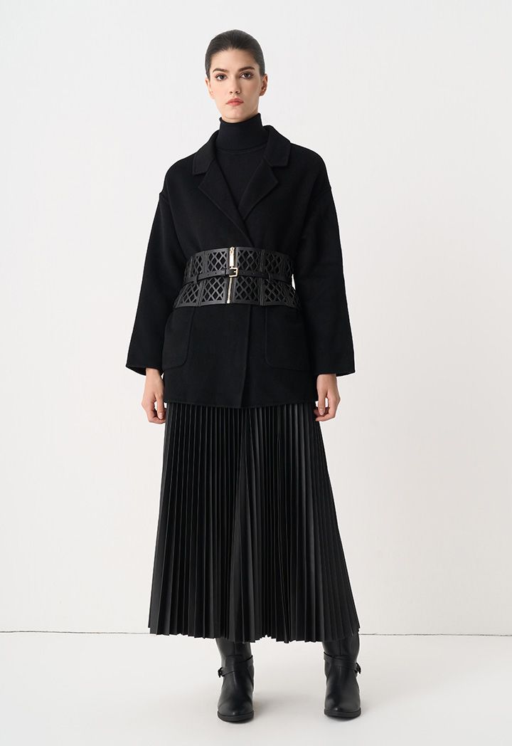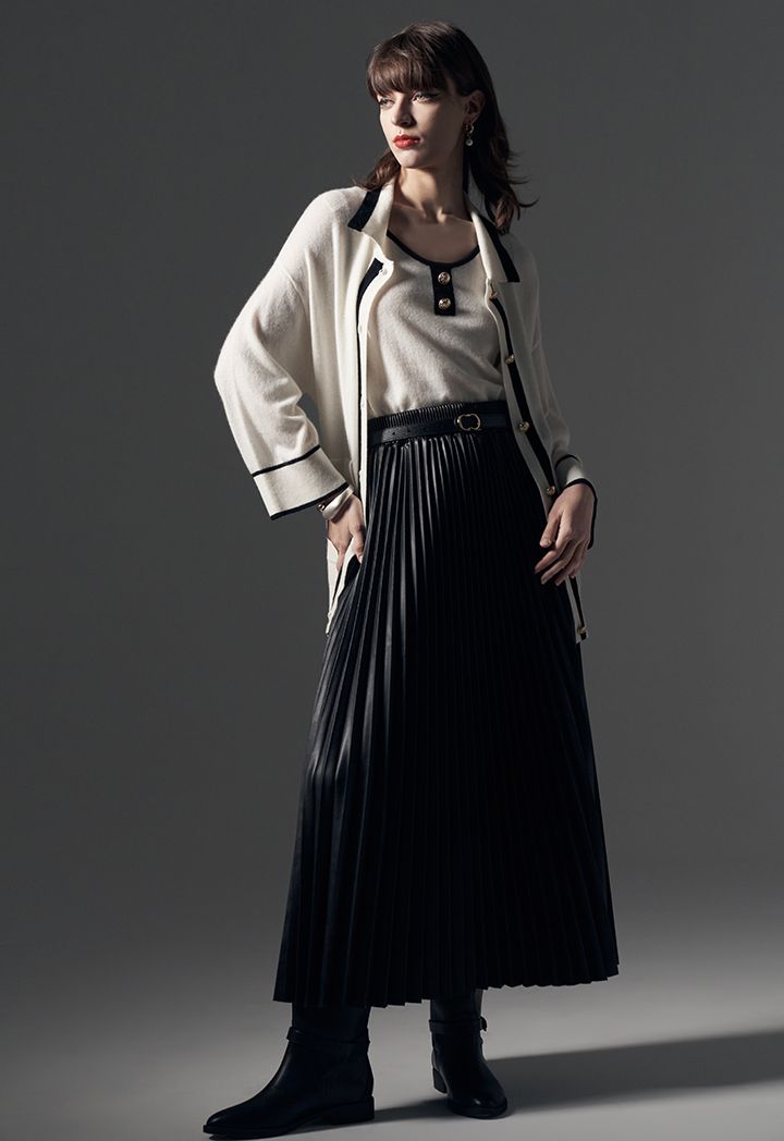 Single Tone Faux Leather Plated Skirt |