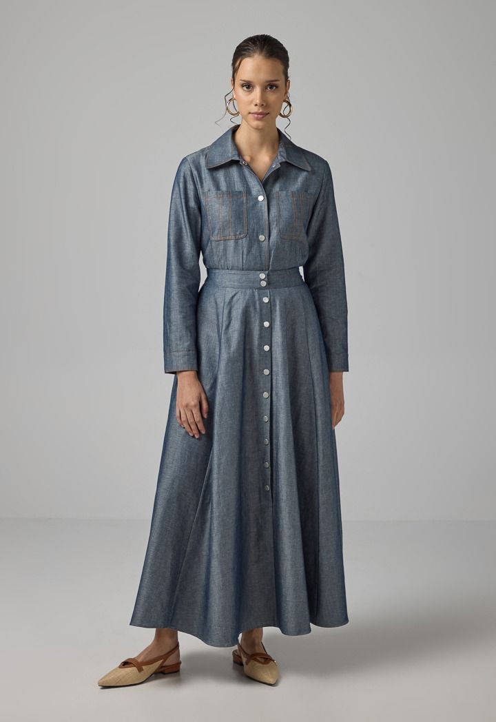 Design: Single Tone, Pockets, Flared, Faux Buttons Detail, Elasticated Waist