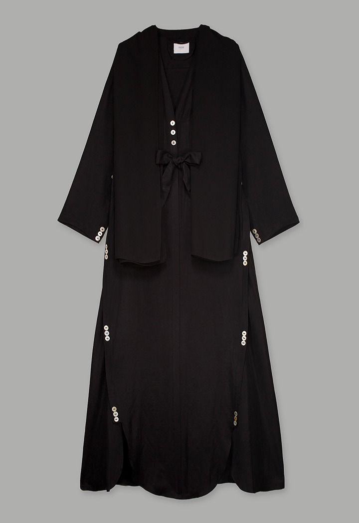 Single Tone Long Sleeve Abaya With Hijab (2Pcs) |
