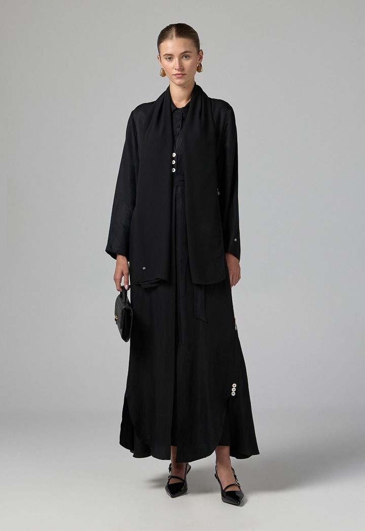 Elevate your wardrobe with the sophisticated elegance of this Abaya . Step into timeless style with this stunning abaya that exudes charm and confidence.