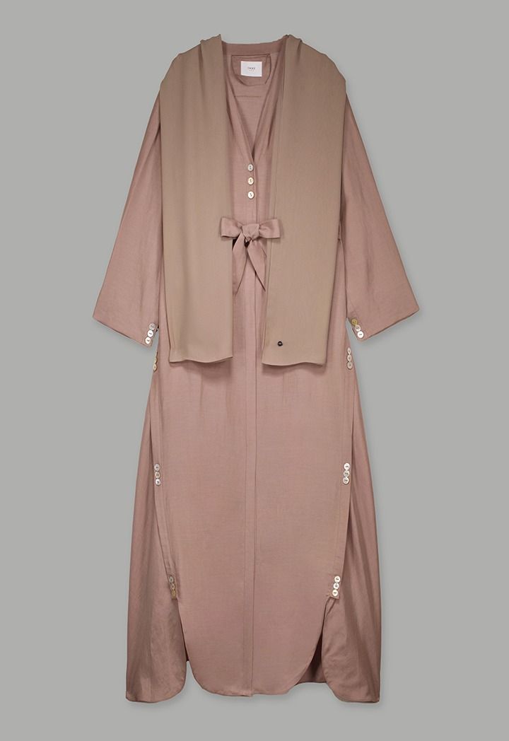 Single Tone Long Sleeve Abaya With Hijab (2Pcs) |