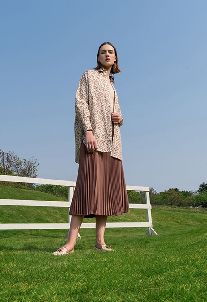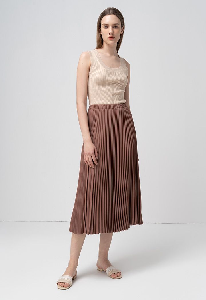 Complete your closet of bottom wear by getting this Accordion skirt that is designed in a single, deep shade.