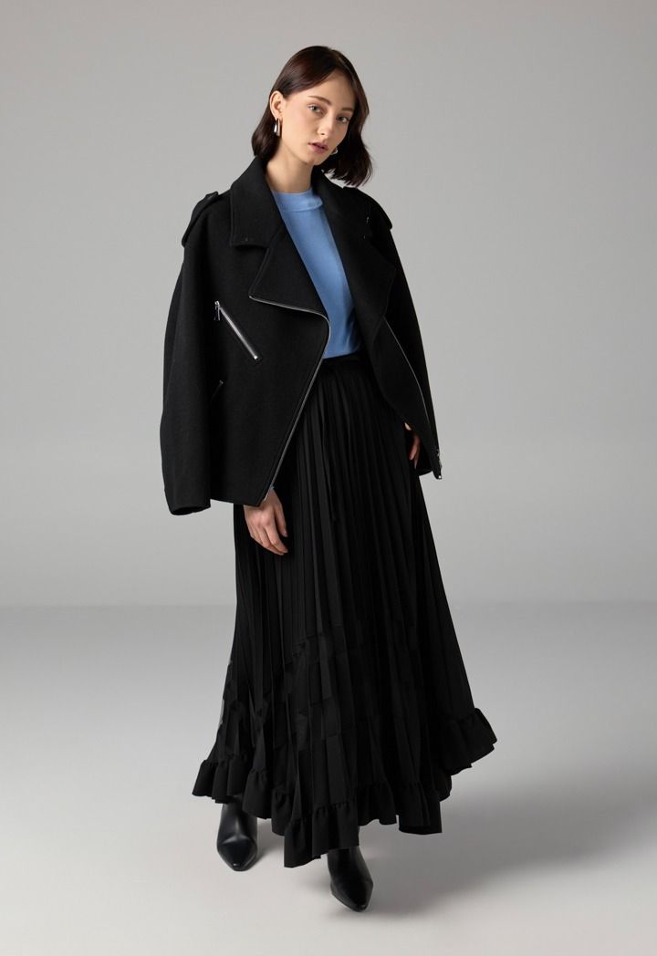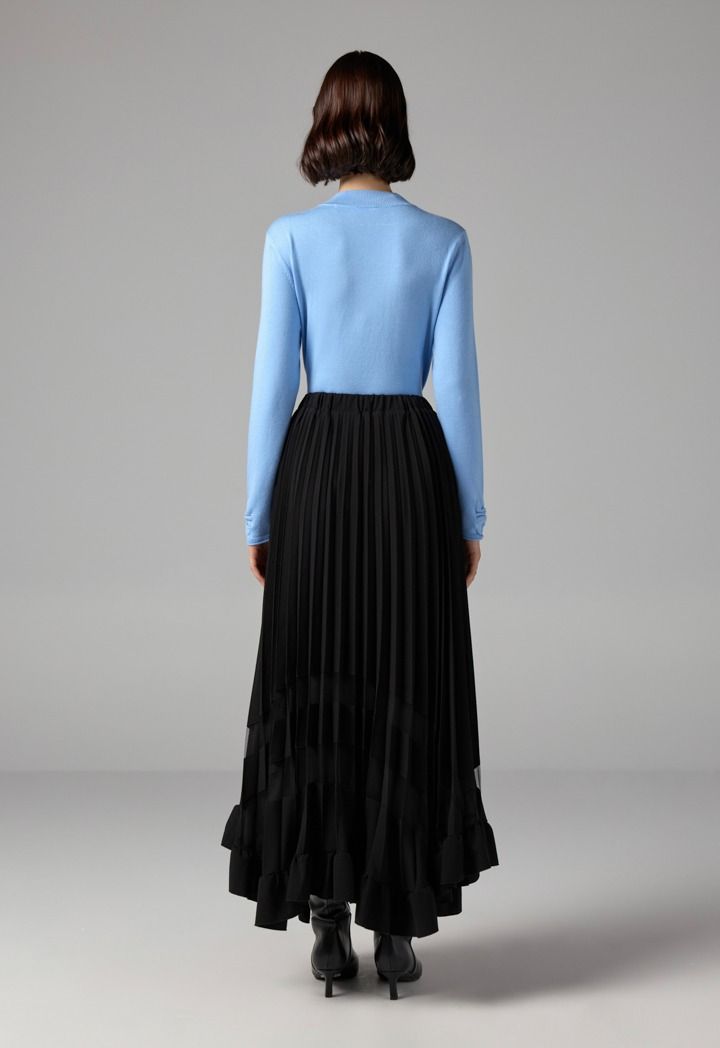 Single Tone Pleated Maxi Skirt |
