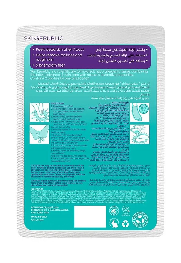 skin Republic is a scientifically formulated, hypo-allergenic range combining the latest advances in skin care with nature's restorative properties Contains 2 booties for one application.
