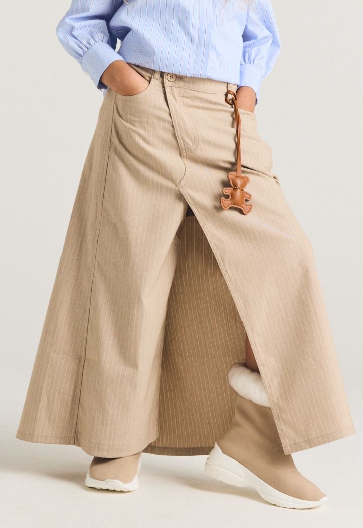 These trousers with a skirt design are unique and versatile for various styling options.