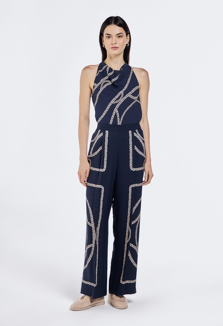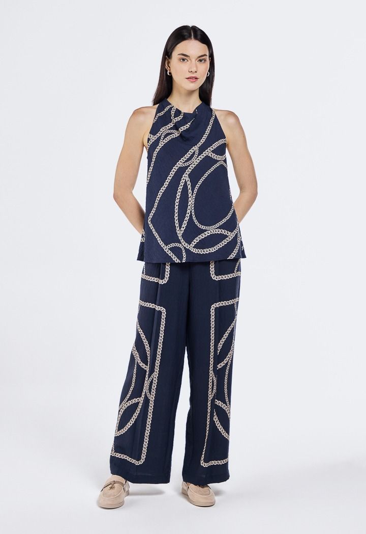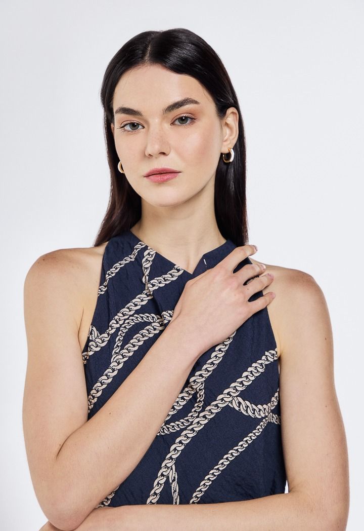 Turn heads in this chic sleeveless top with a bold chain print, the perfect mix of elegance and edge.