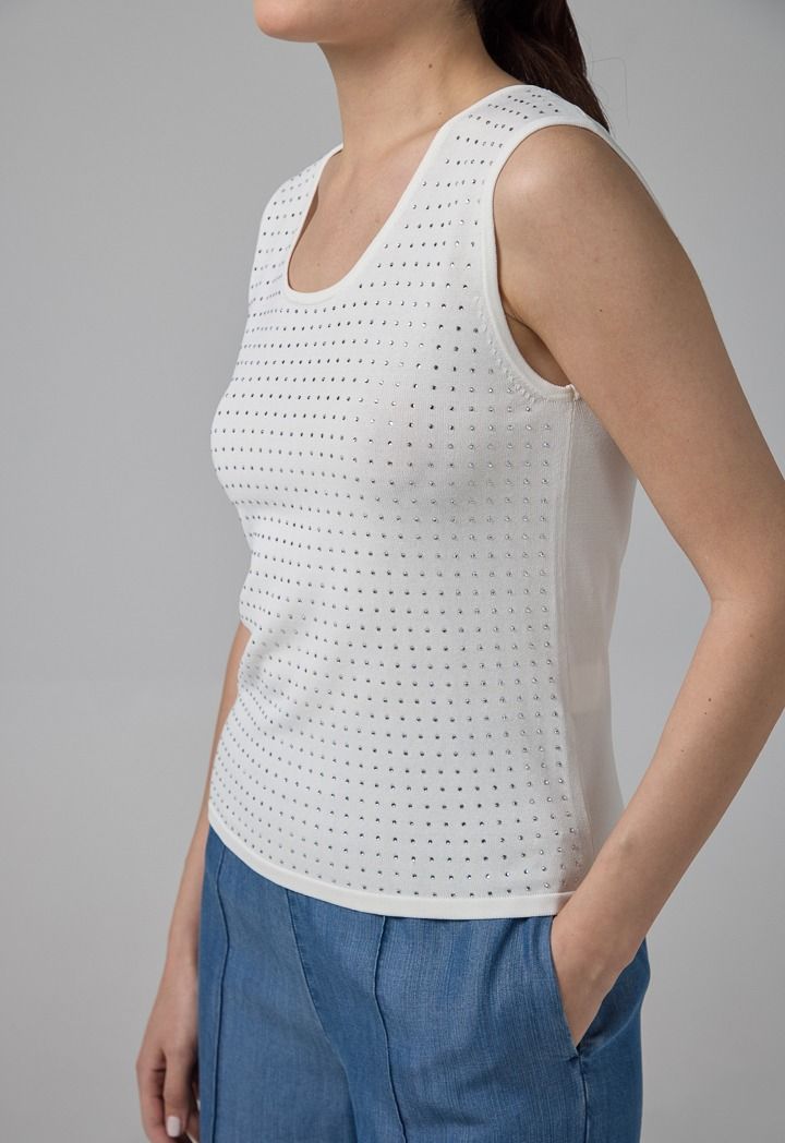 Sleeveless Crystal Embellished Knitted Top |
