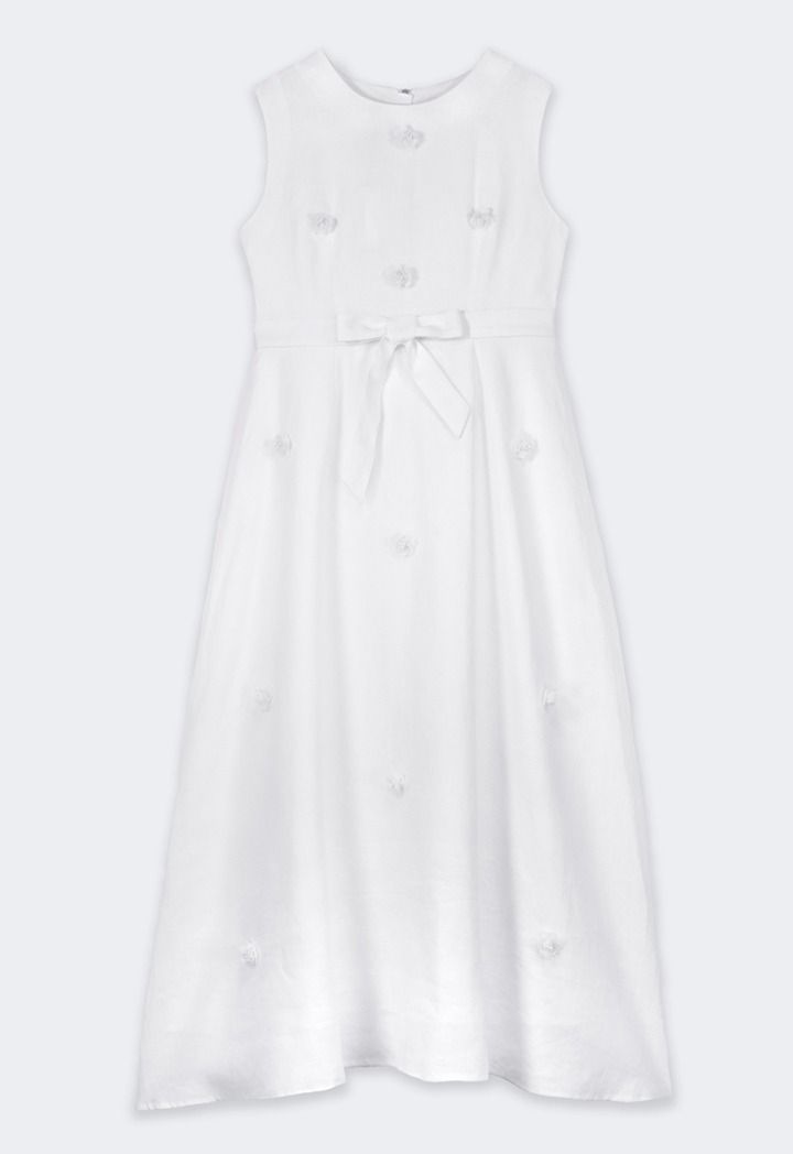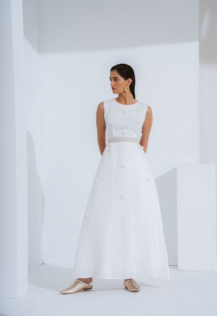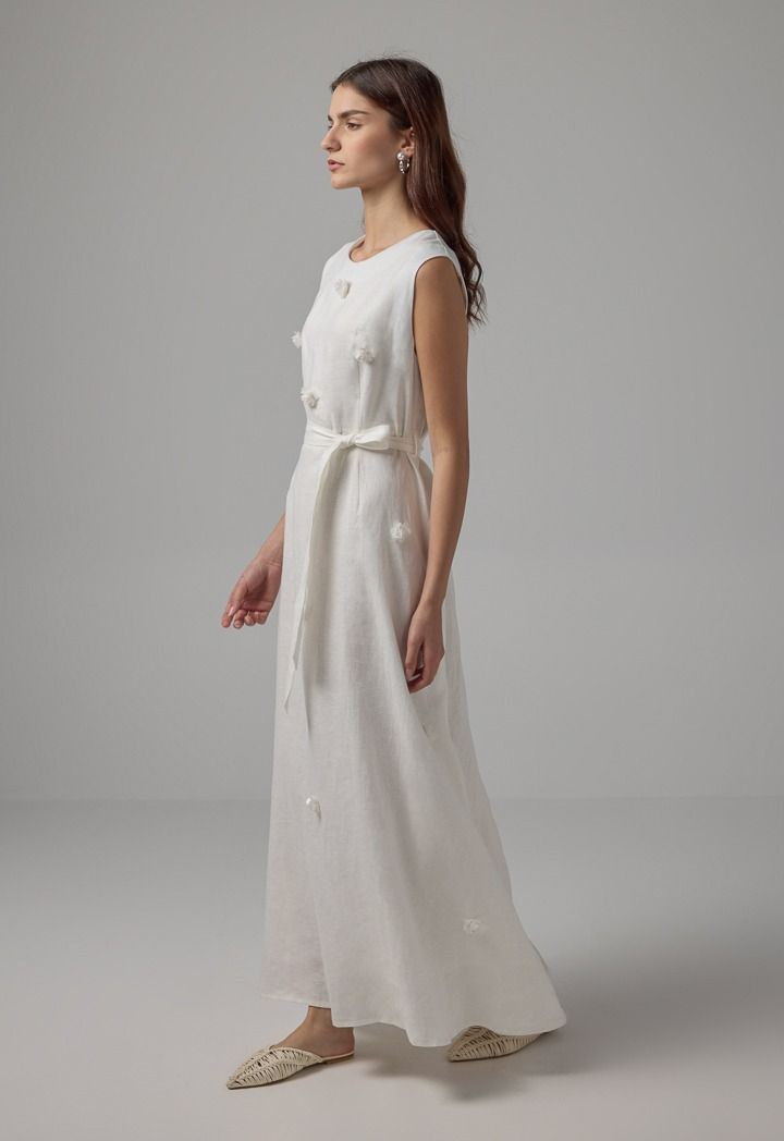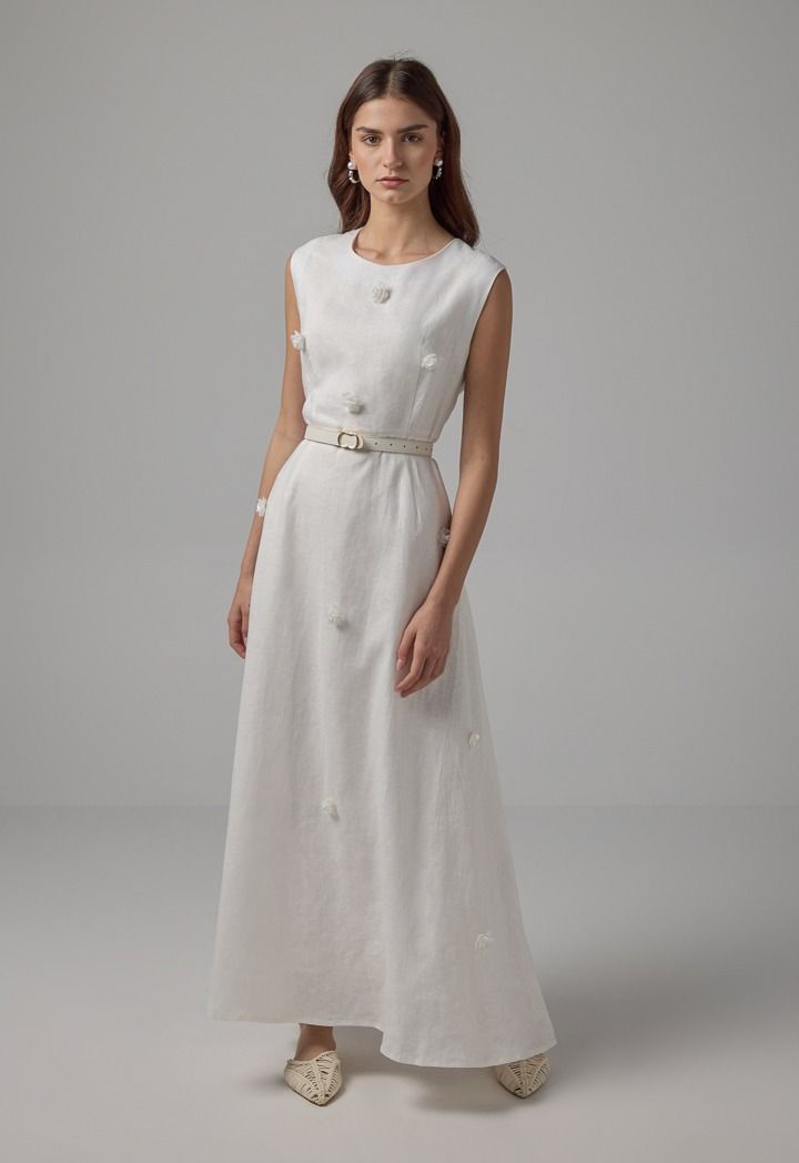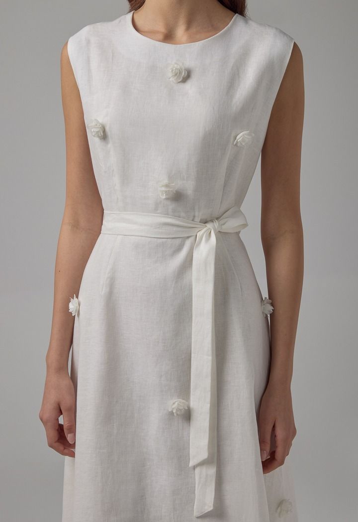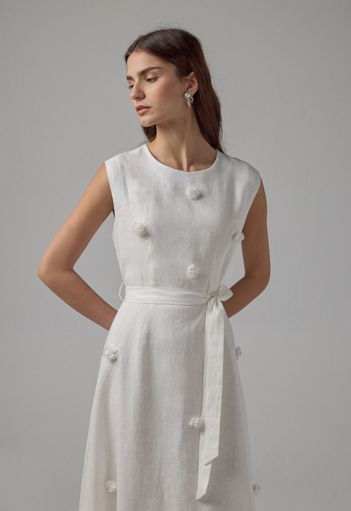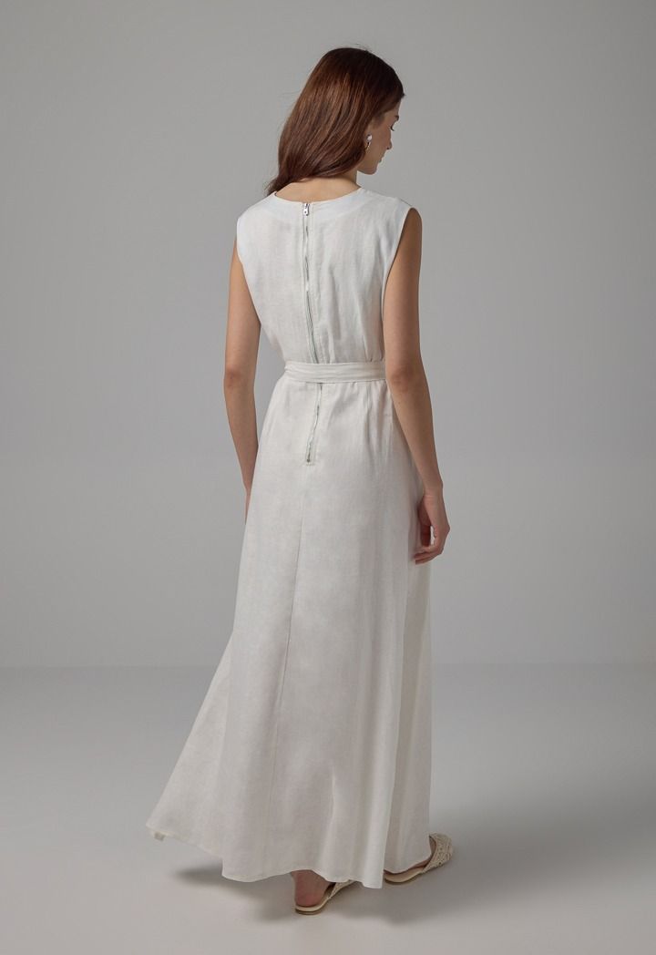 Sleeveless Flared Linen Belted Dress |