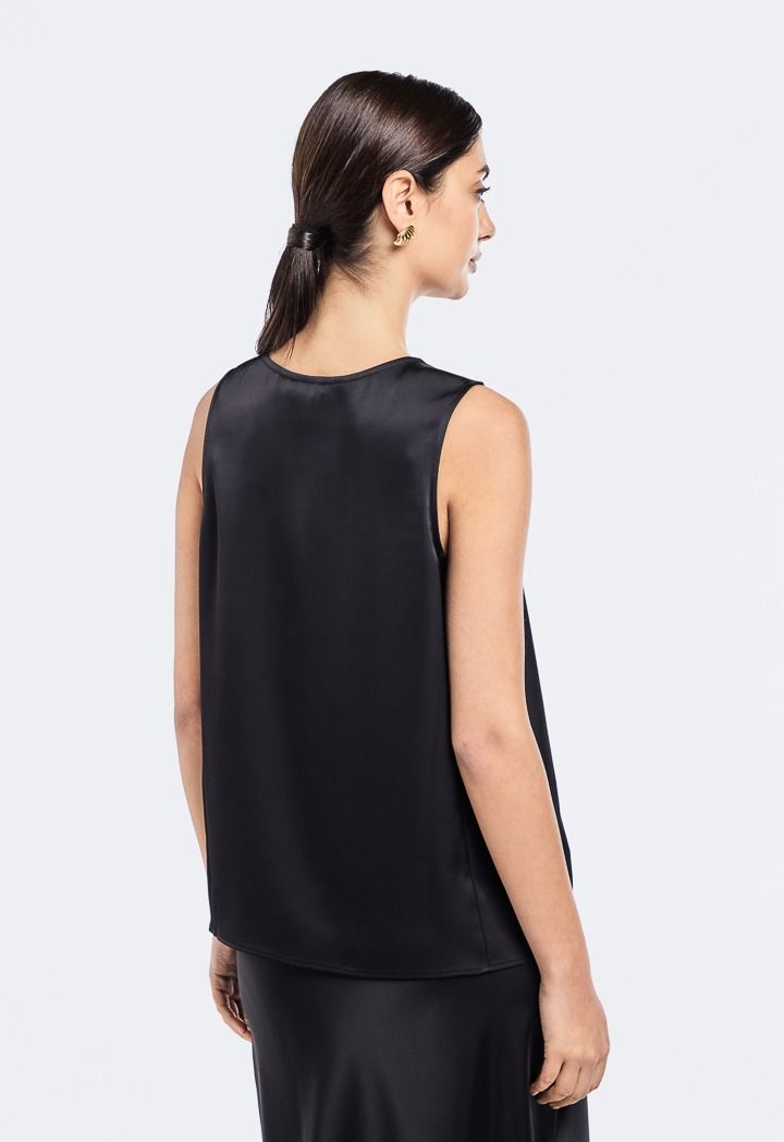 Add this satin Sleeveless Basic Top to your wardrobe.