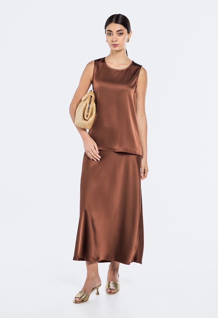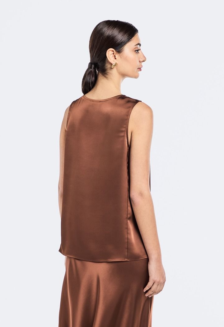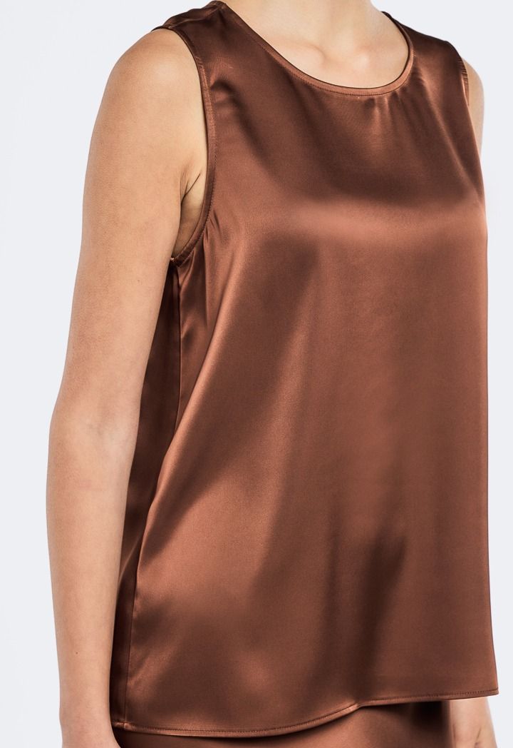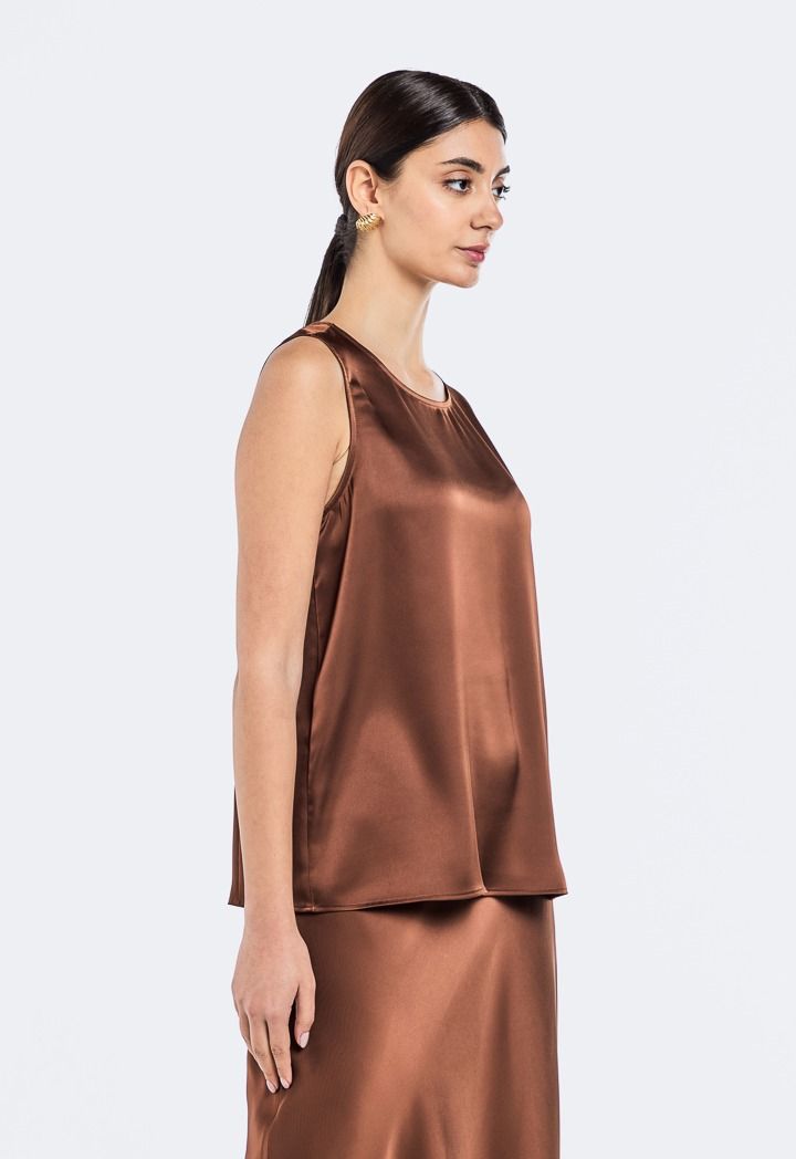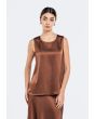 Add this satin Sleeveless Basic Top to your wardrobe.
