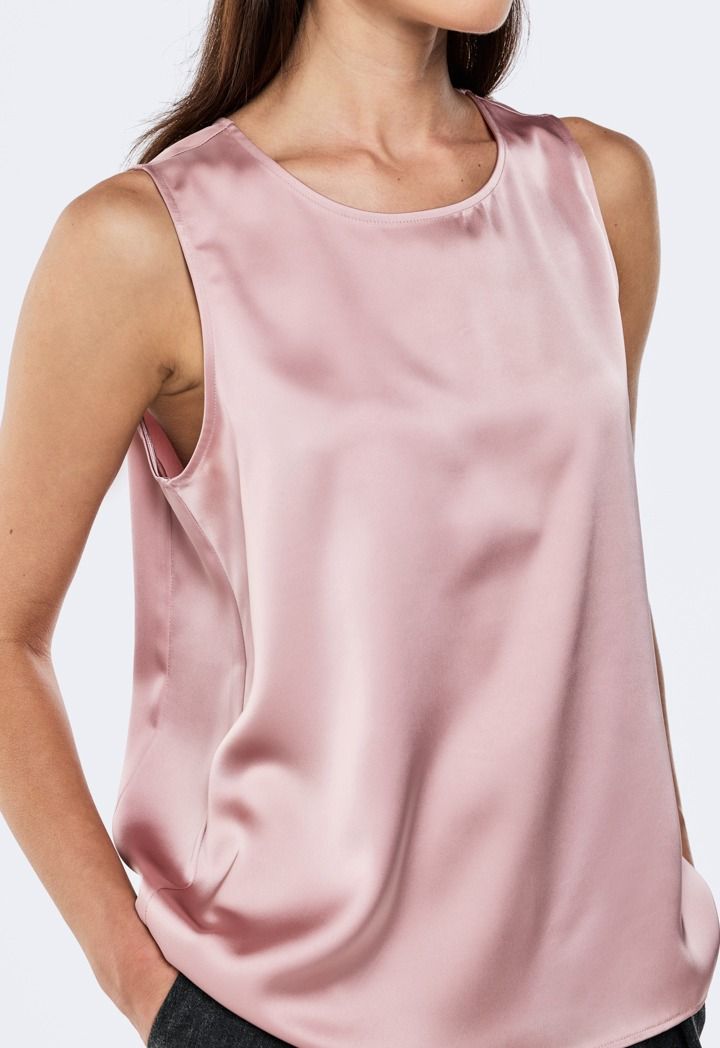 Add this satin Sleeveless Basic Top to your wardrobe.