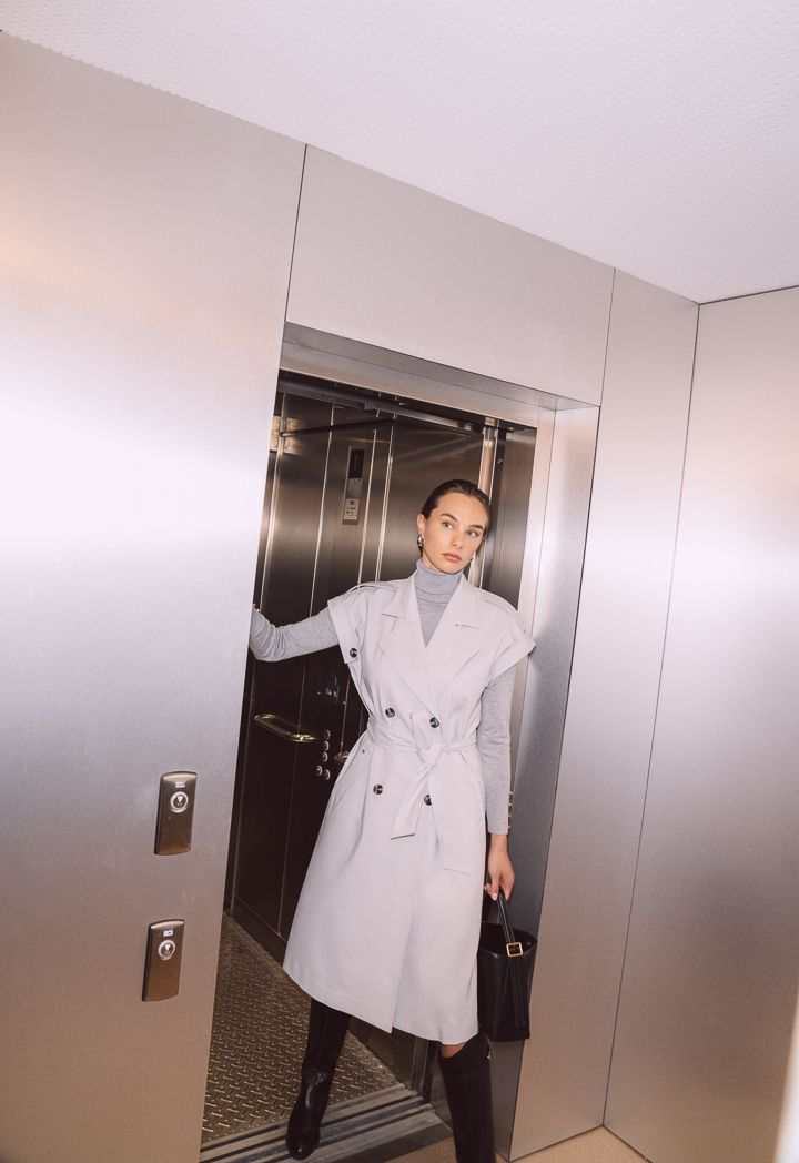 Design: Solid, Double Breasted, Belted, Side Pockets