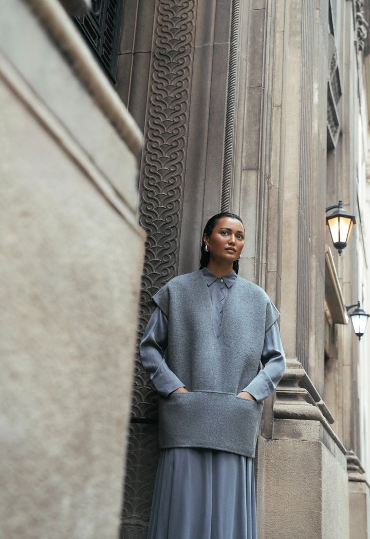 A chic update on the classic sweater vest. Add this stylish piece to your collection.