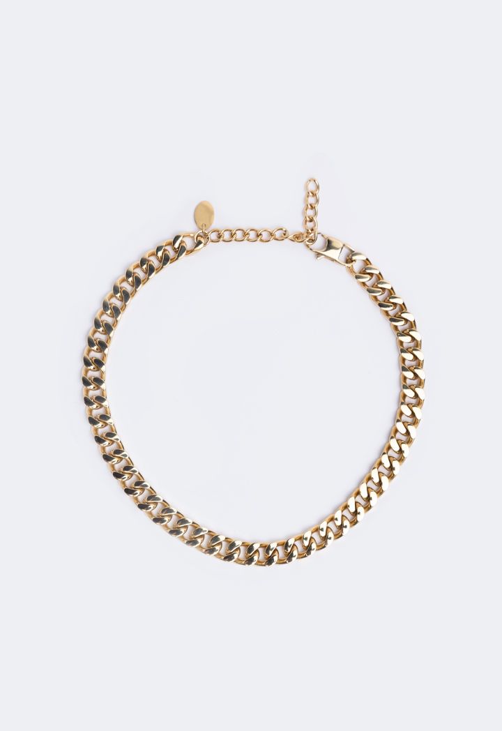 A classic and simple design of a necklace that features a curb chain design that is the easy to pair.
