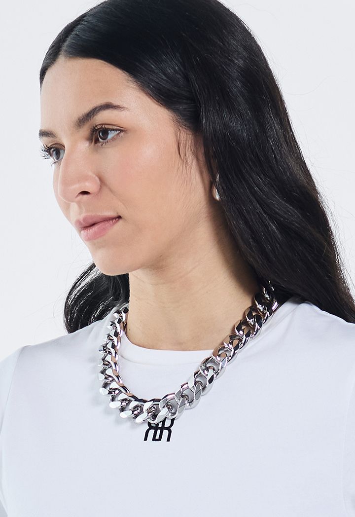 A classic and simple design of a necklace that features a curb chain design that is the easy to pair.