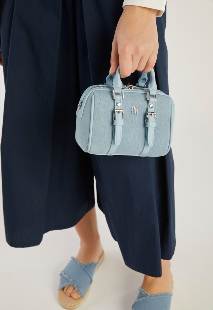 A denim bag that is your go to for quick errands or for appointments on the run, in addition to a shoulder strap for those hands-free moments.