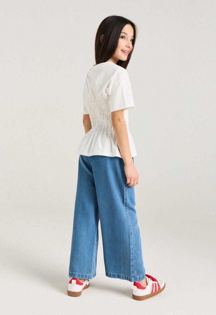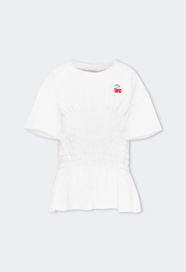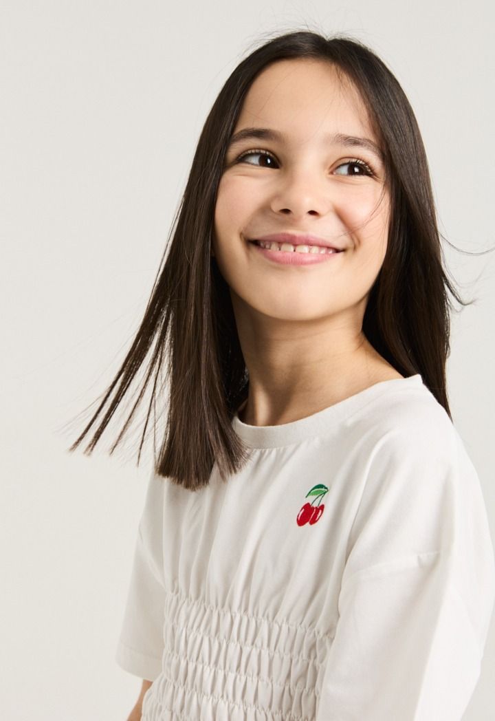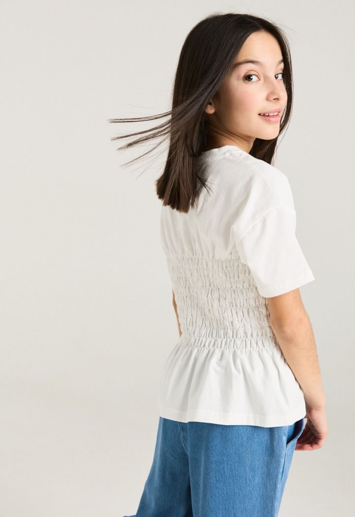 Chic T Shirt for your girl. It features a crew neck, short sleeves and a smocked waist