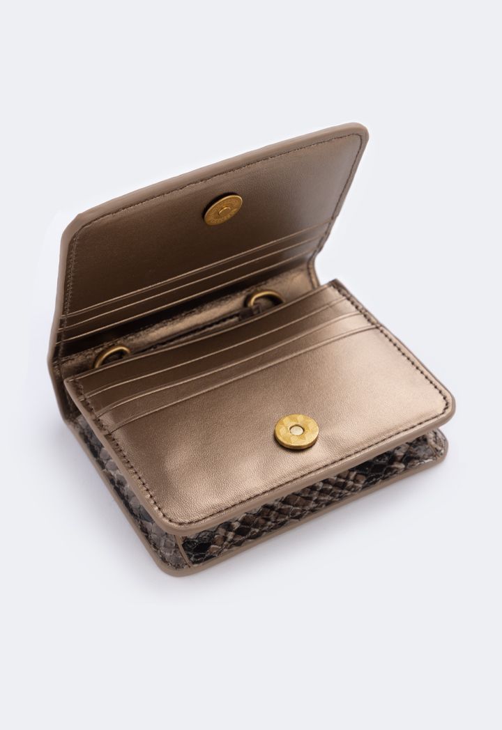 A small yet very practical bag that can do two things at once, featuring a snake pattern design and various compartments that double as card holders.