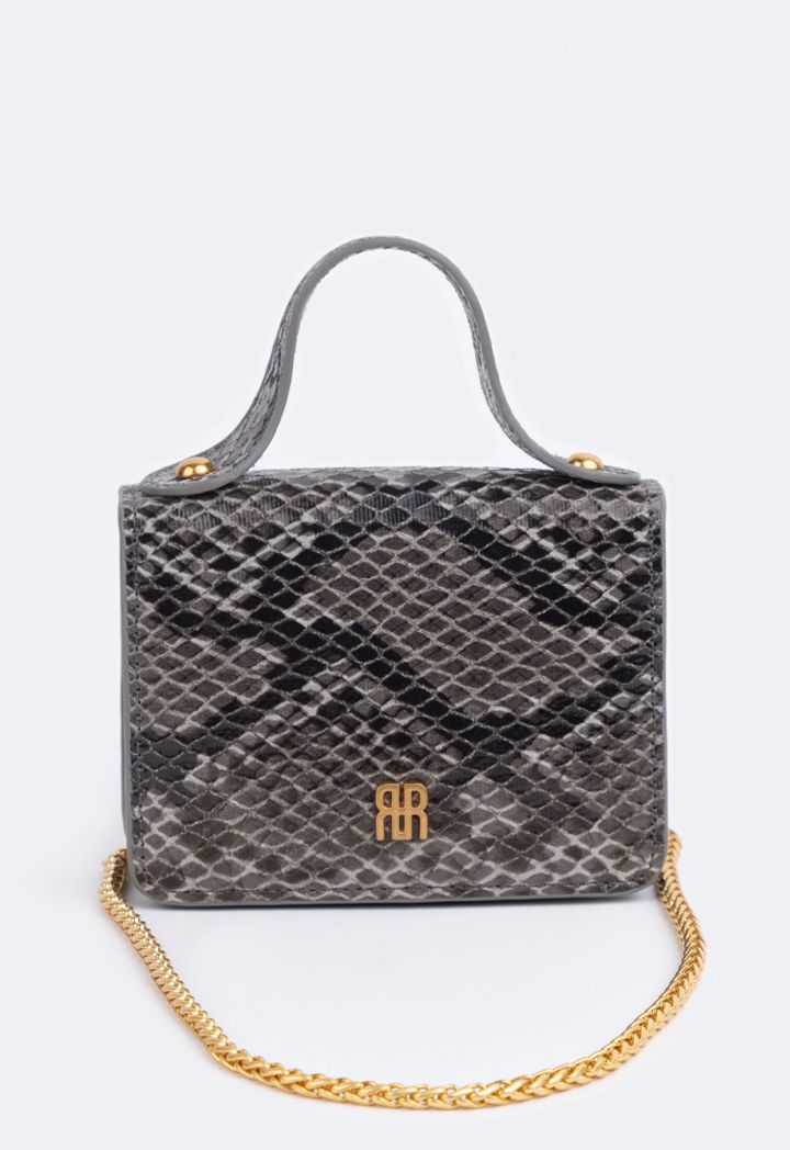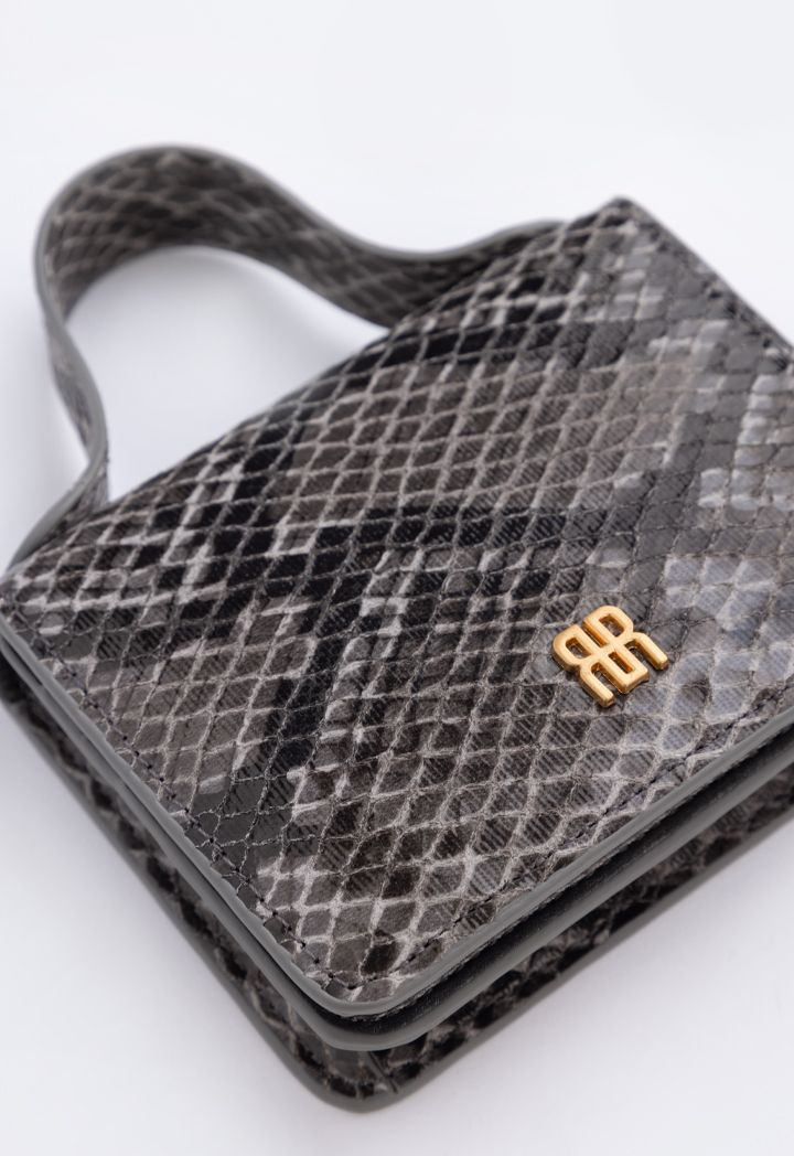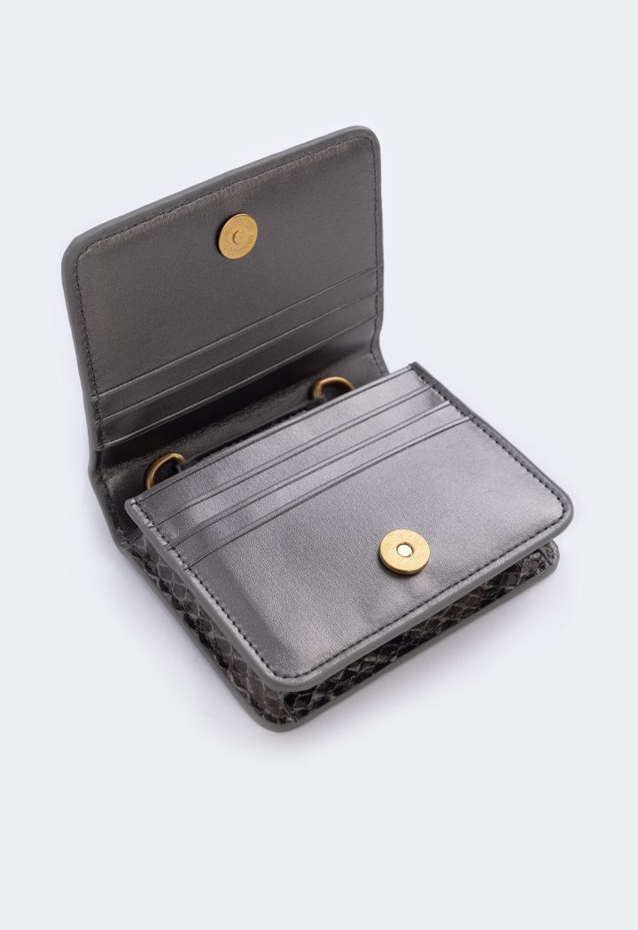 A small yet very practical bag that can do two things at once, featuring a snake pattern design and various compartments that double as card holders.