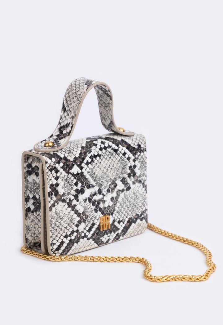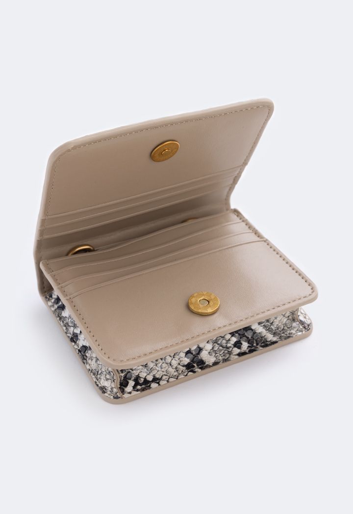 A small yet very practical bag that can do two things at once, featuring a snake pattern design and various compartments that double as card holders.