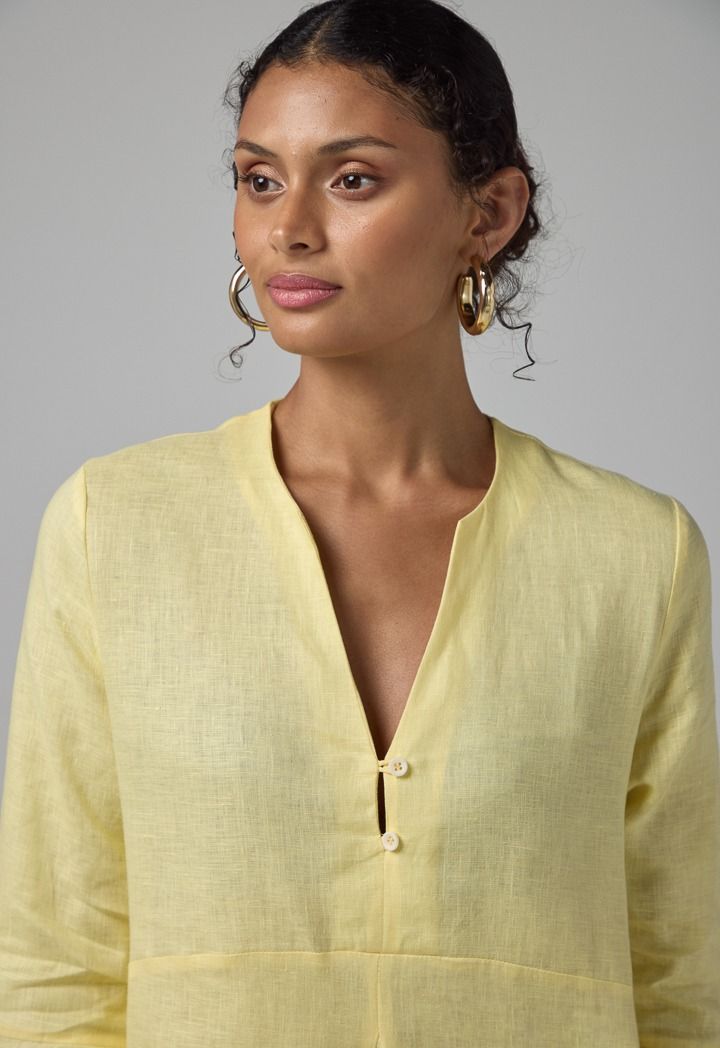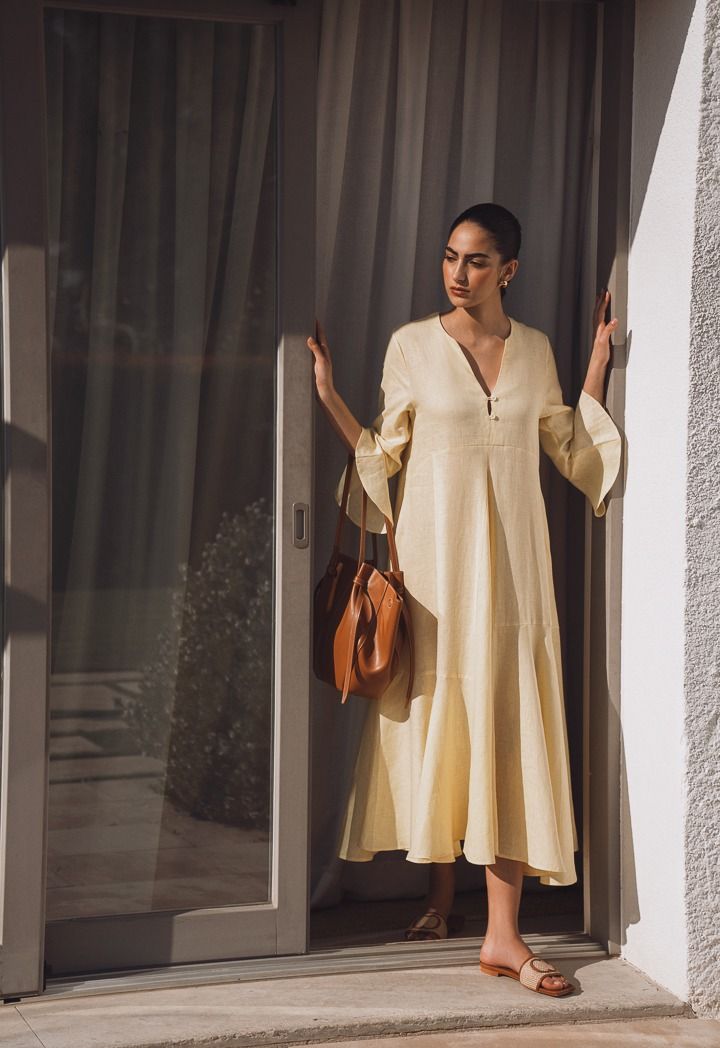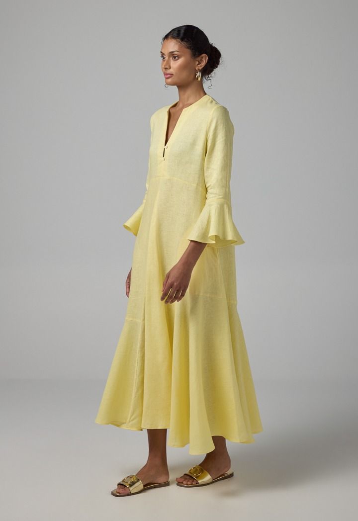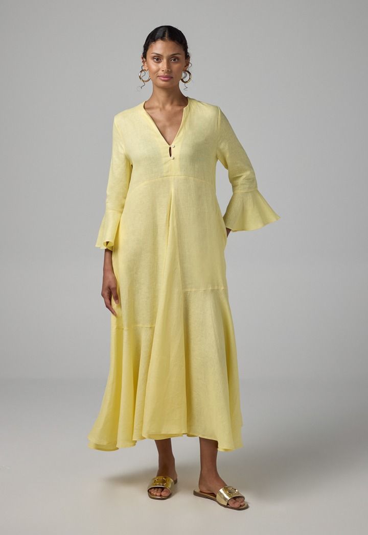 Solid Bell Sleeves Linen Dress |