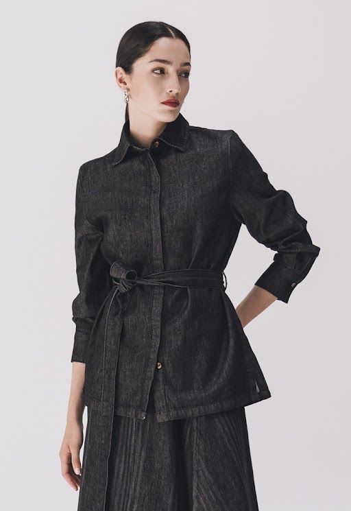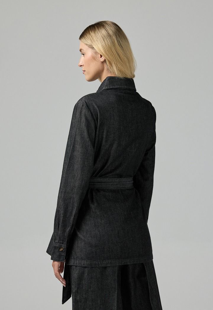 Solid Belted Denim Shirt |