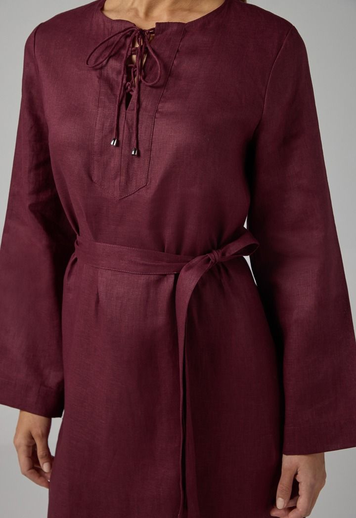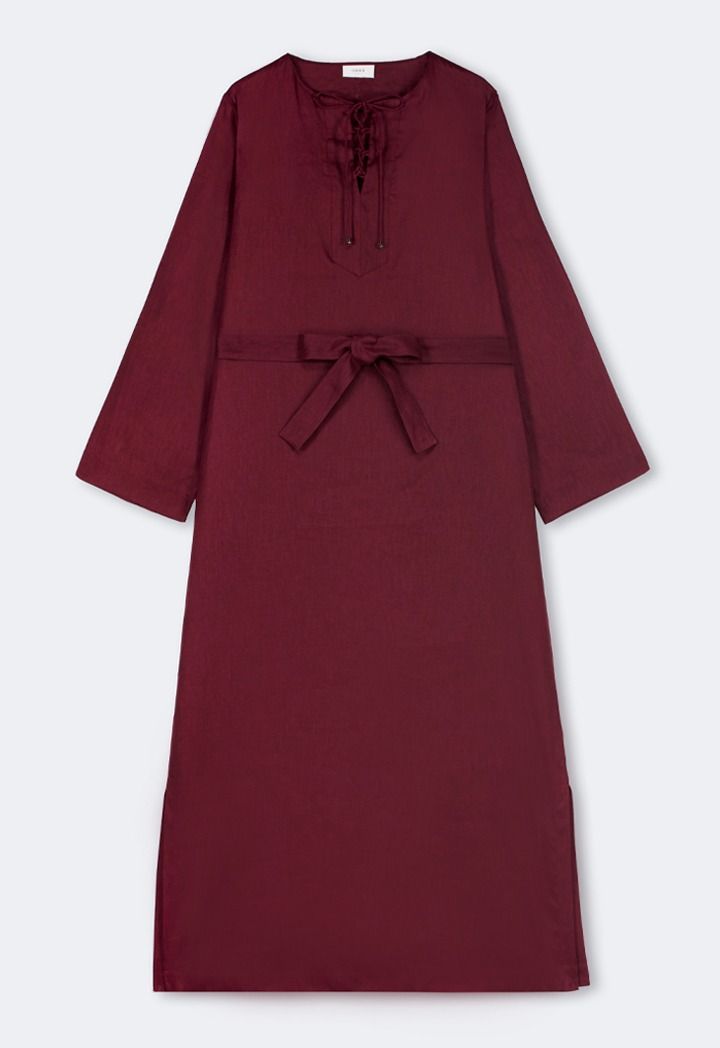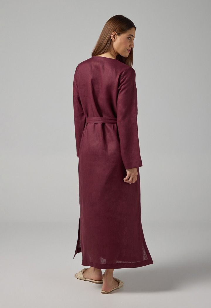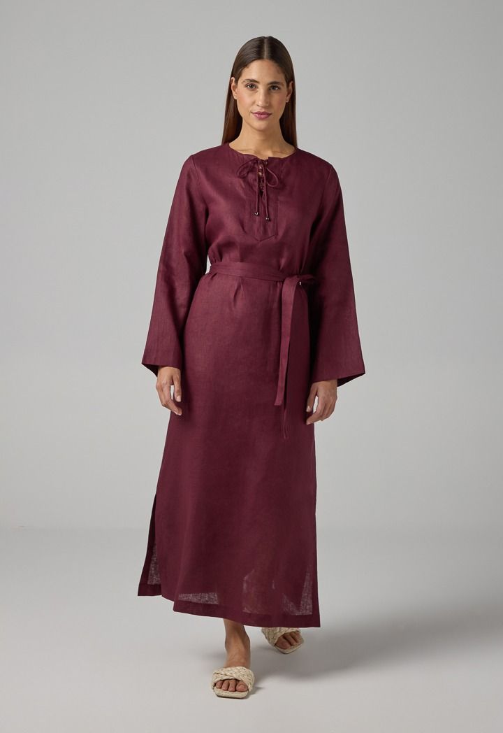 Solid Belted Maxi Linen Dress |