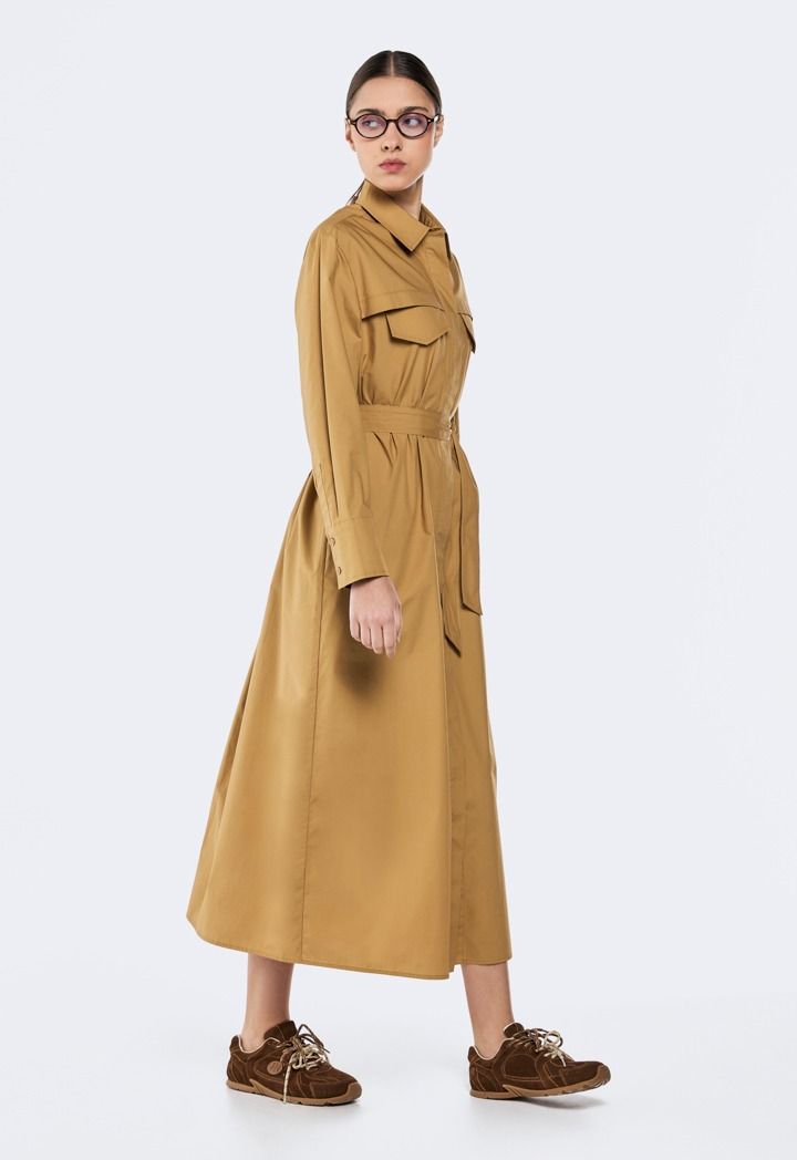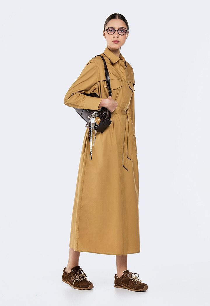 Effortlessly chic! Our belted shirt dress defines minimal elegance with flattering silhouette.