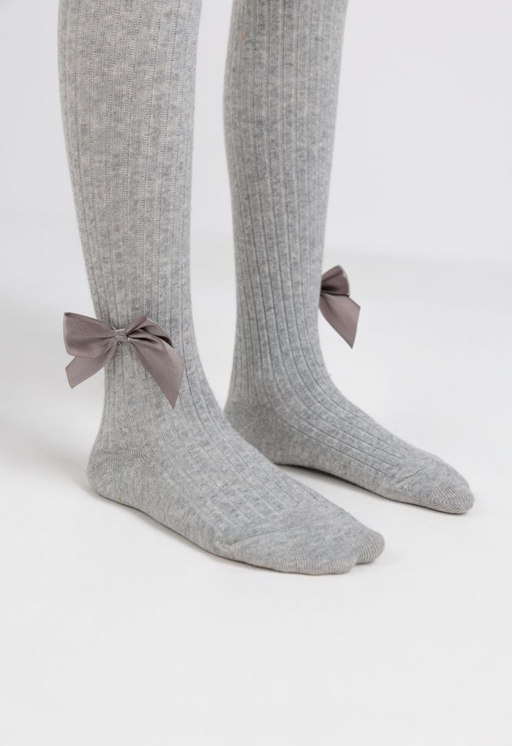A solid pair of tights that features a beautiful soft and bow embellished design.