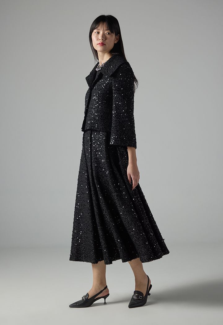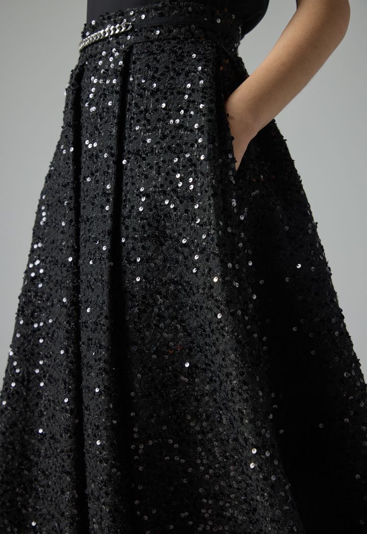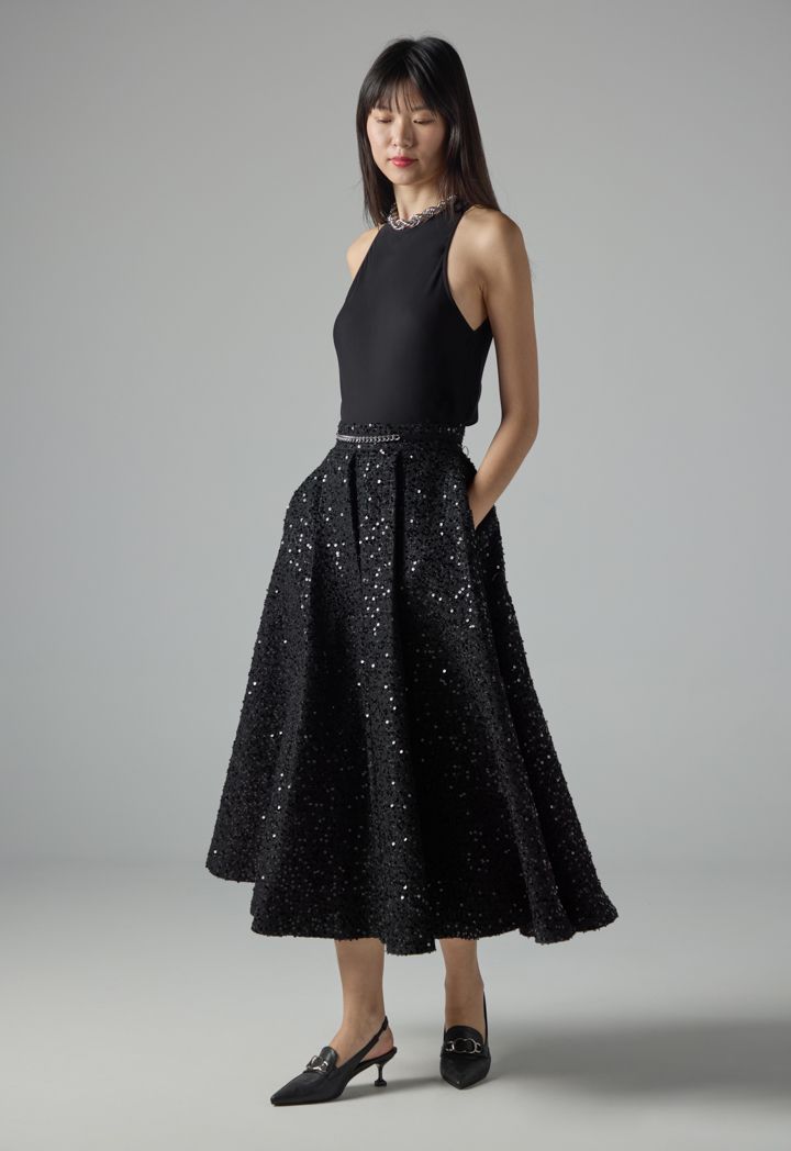 Design: Solid, Box Pleated, Tweed, Side Pockets, Chain Details