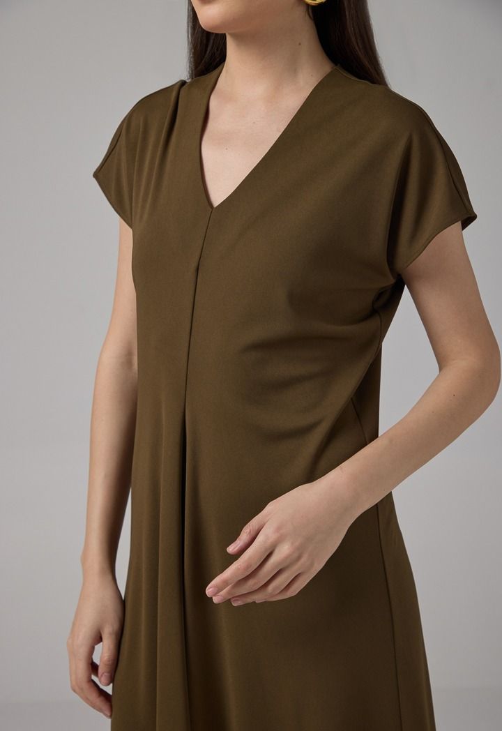 Solid Cap Sleeves Dress |