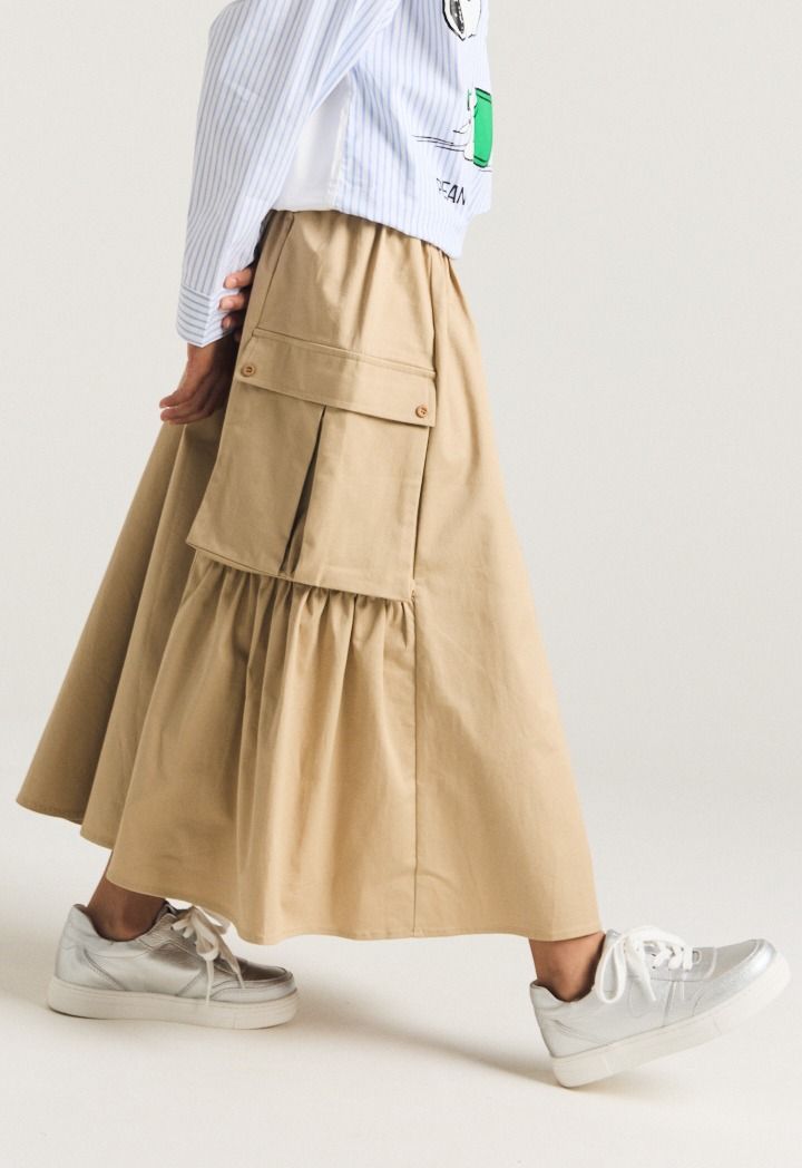 Stylish cargo skirt with pockets, comfy and perfect for your daughter’s playday.