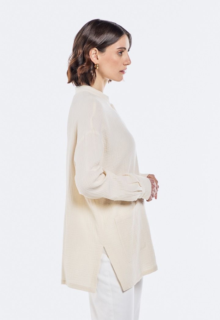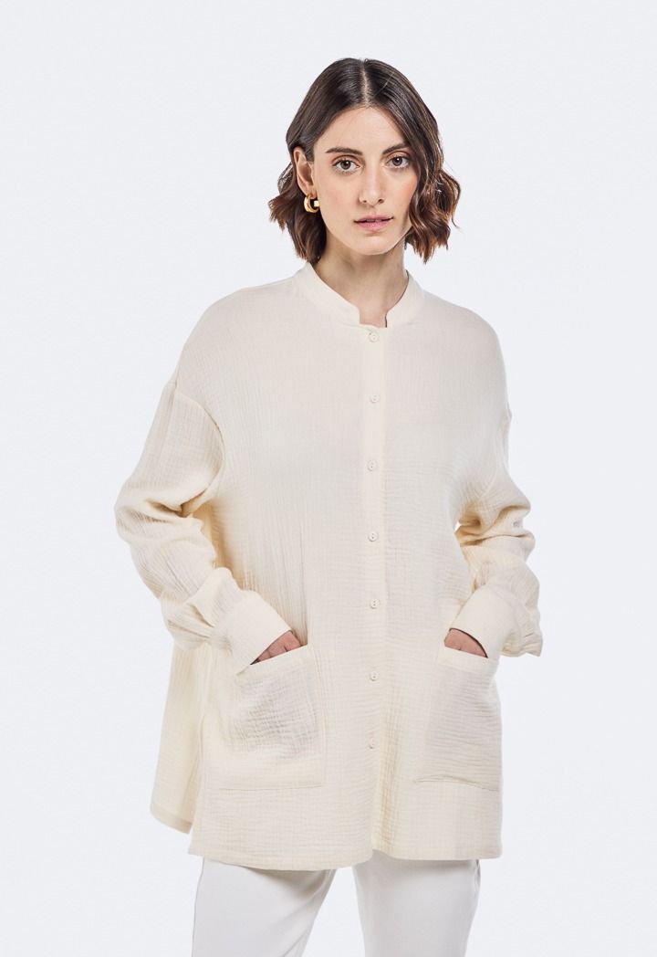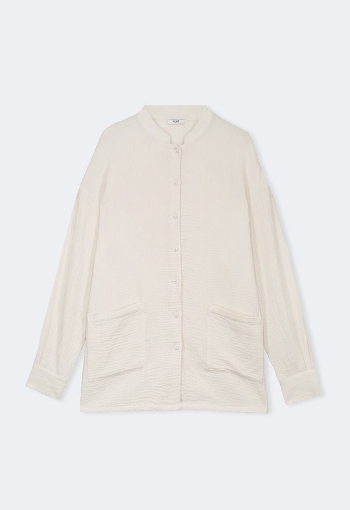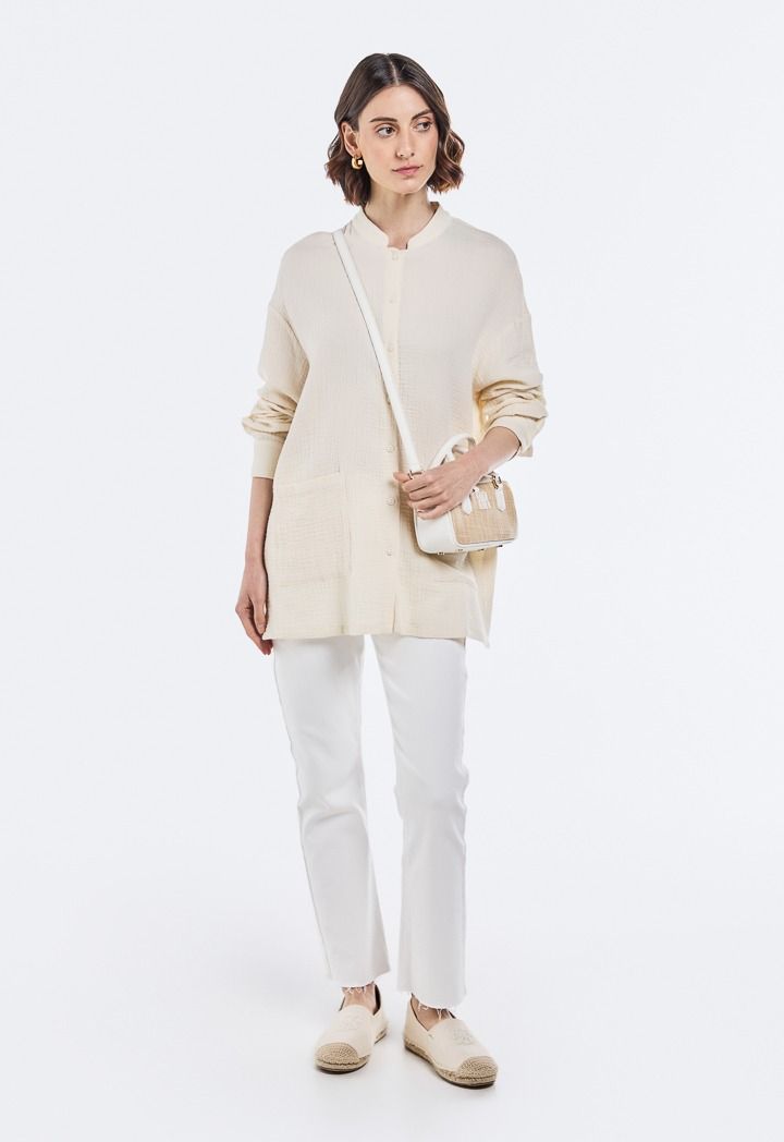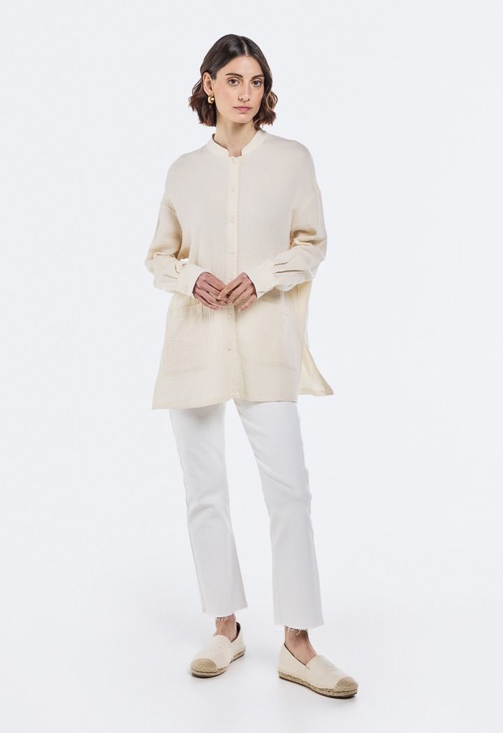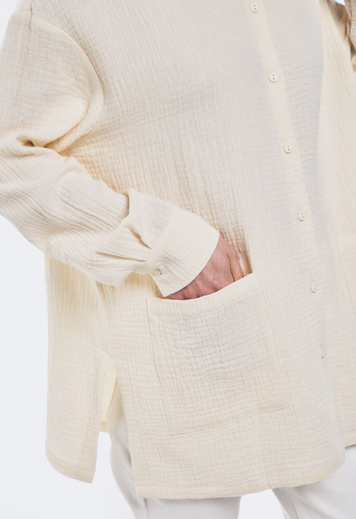Design: Solid, Cotton Gauze, Drop Shoulders, Patch Pockets