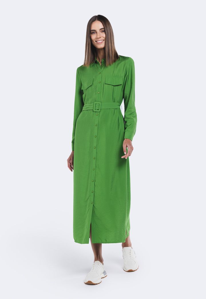 Solid Crinkled Belted Dress |