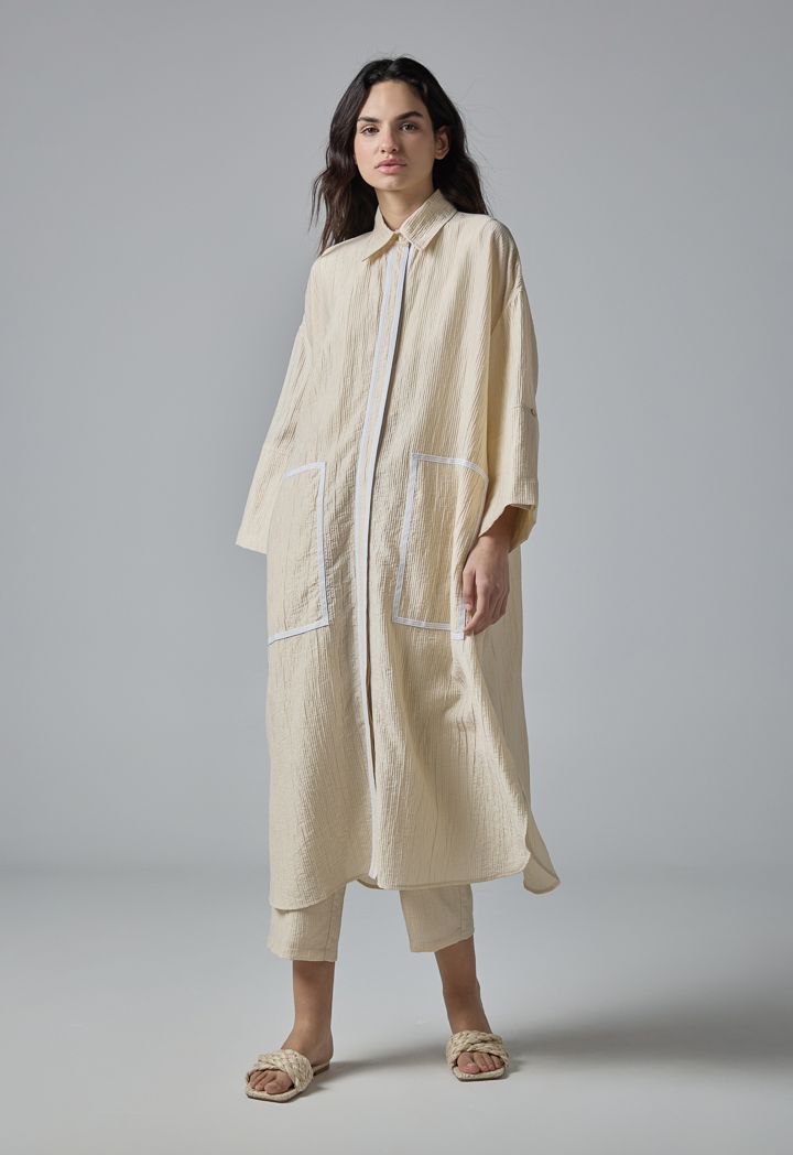 Design: Solid, Drop Shoulder, Pockets, Crinkled, Lace Details