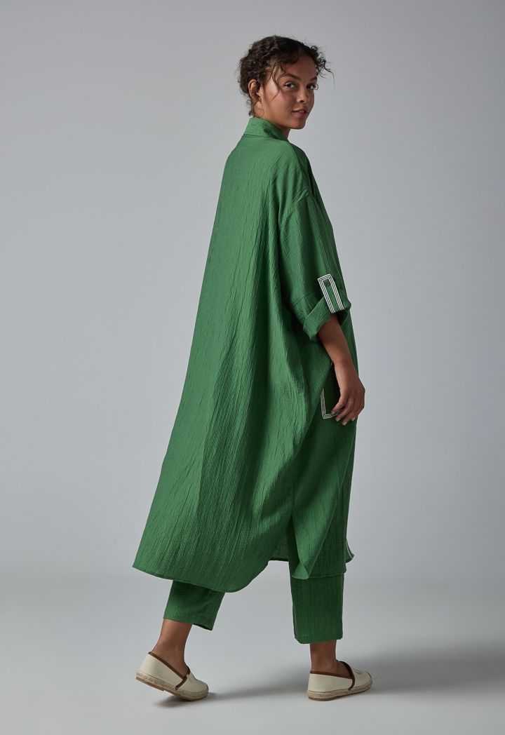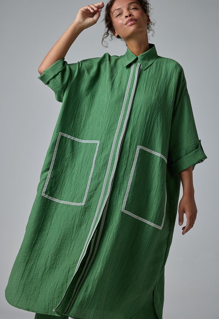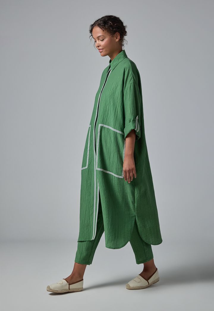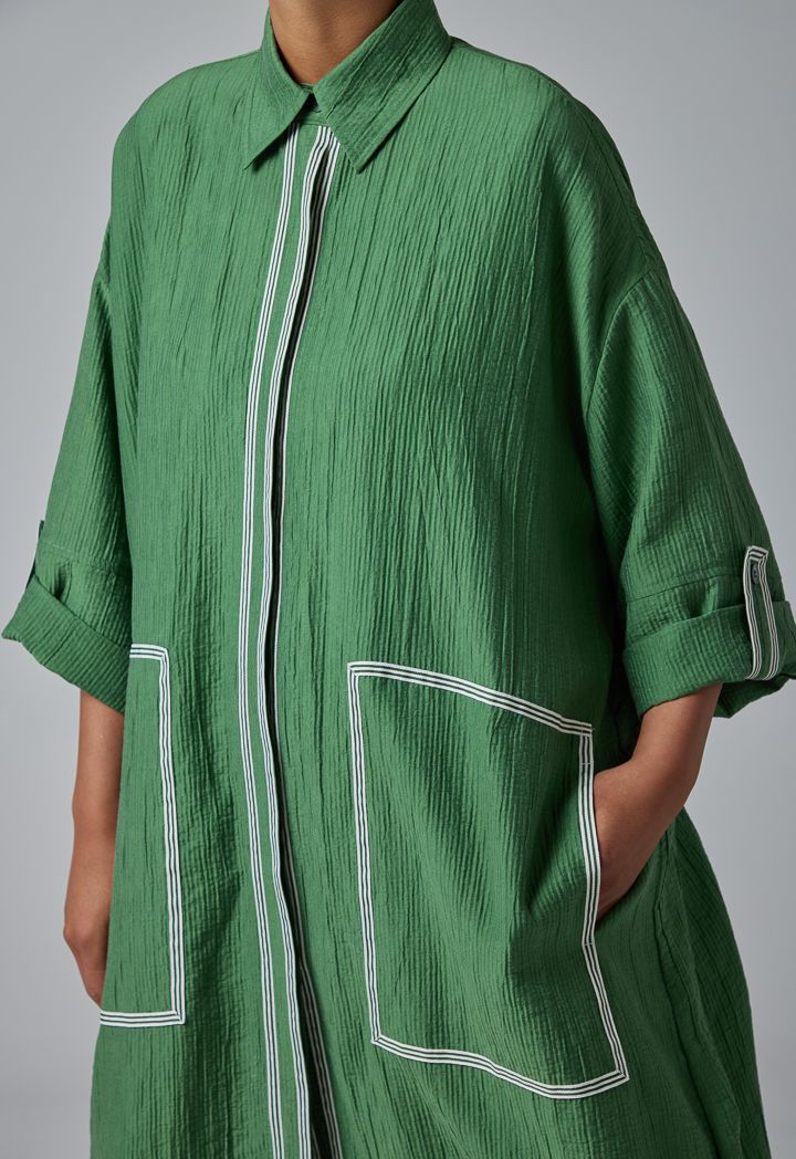 Design: Solid, Drop Shoulder, Pockets, Crinkled, Lace Details