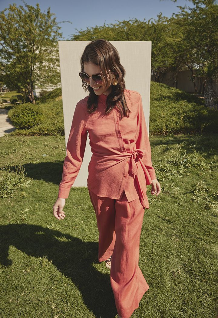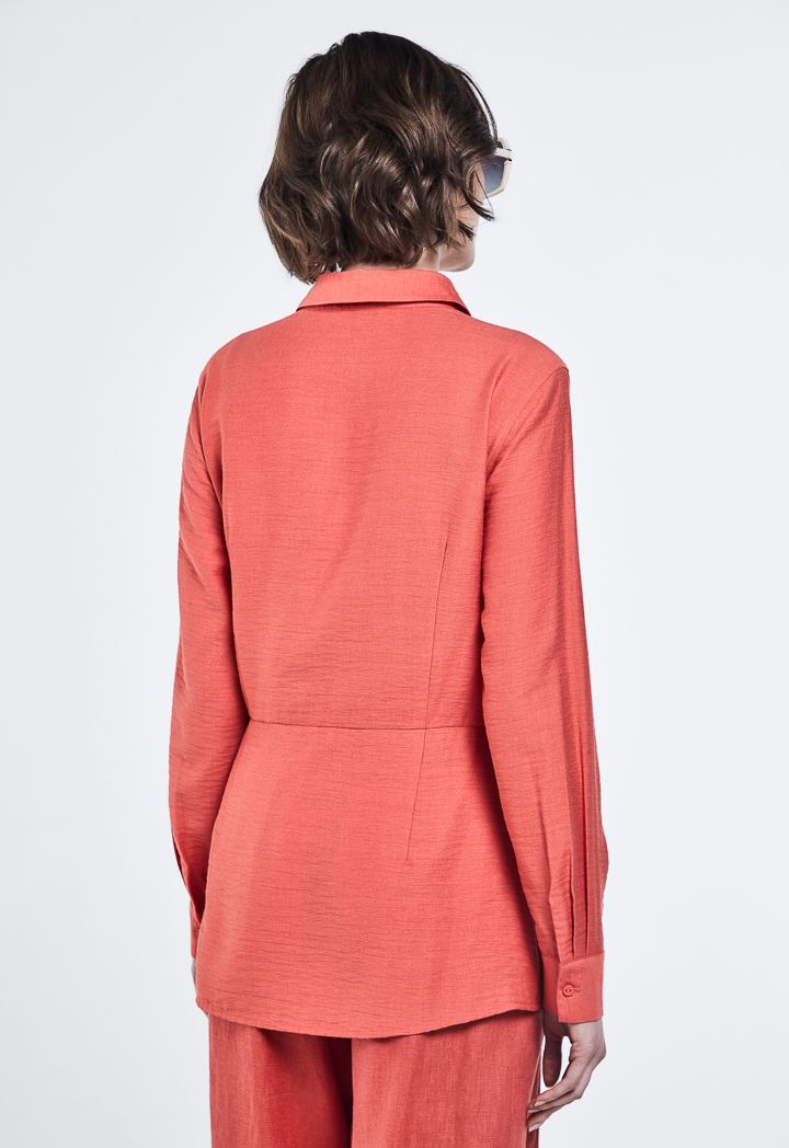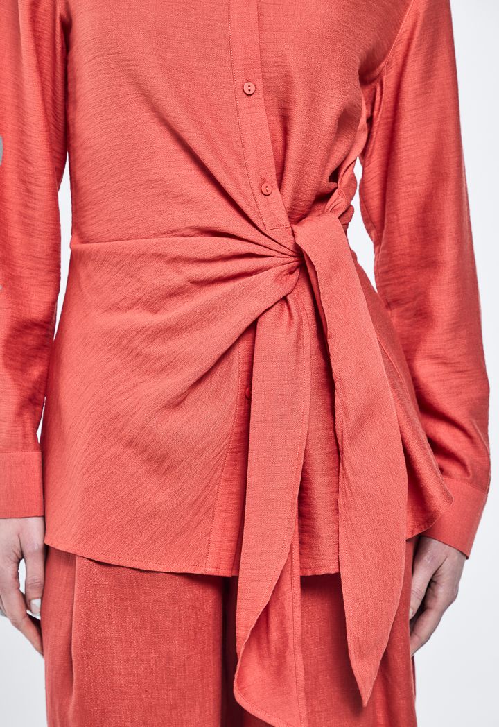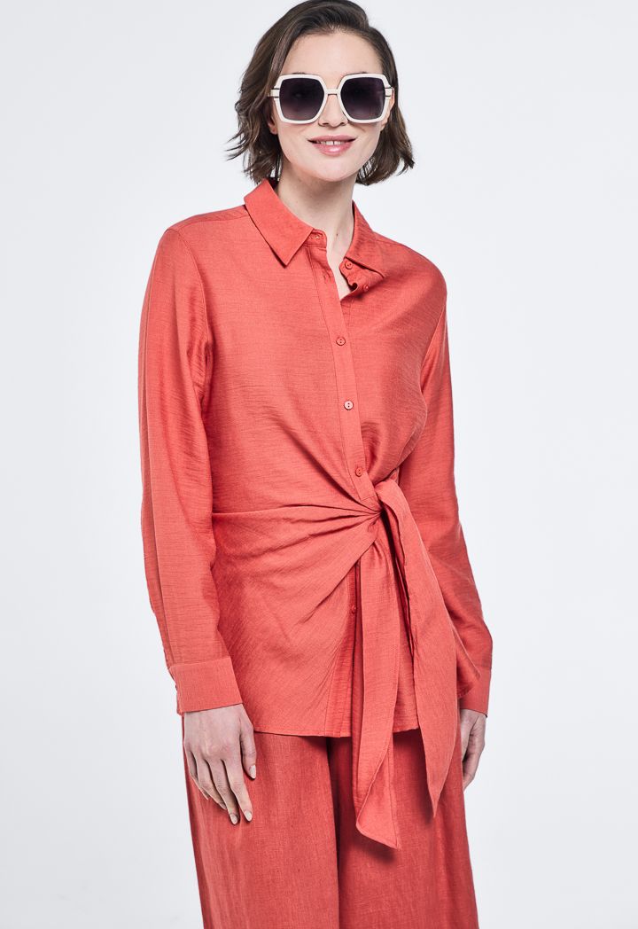 Solid Crinkled Side Tie Shirt |