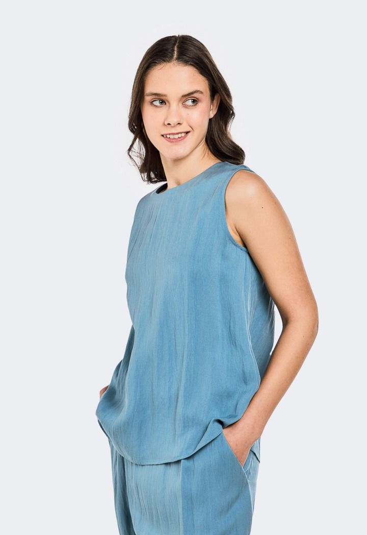 Solid Crinkled Sleeveless Top |
