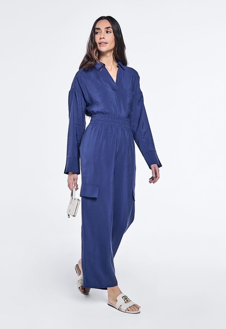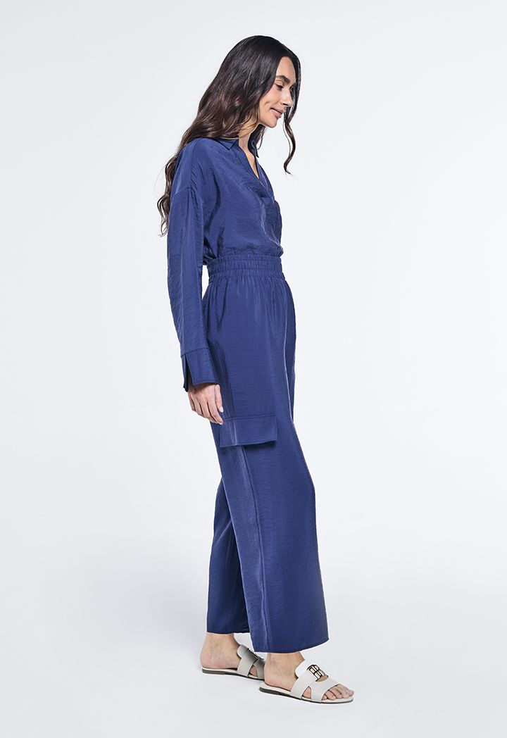 Solid Crinkled Straight Leg Trousers |