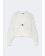 This cardigan showcases elegant crochet textures paired with a beautiful metallic touches.