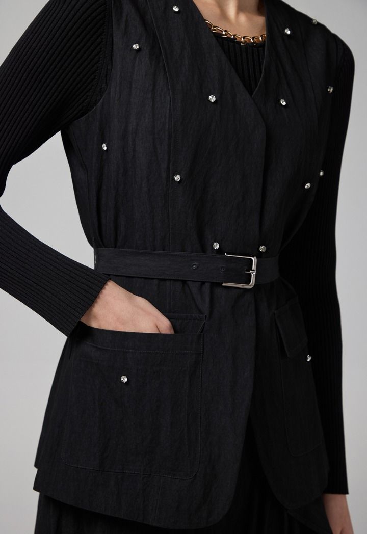 Well-designed Crystal Embellished Gilet only for you. Dress up with this chic Gilet and impress everyone.