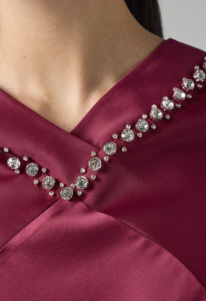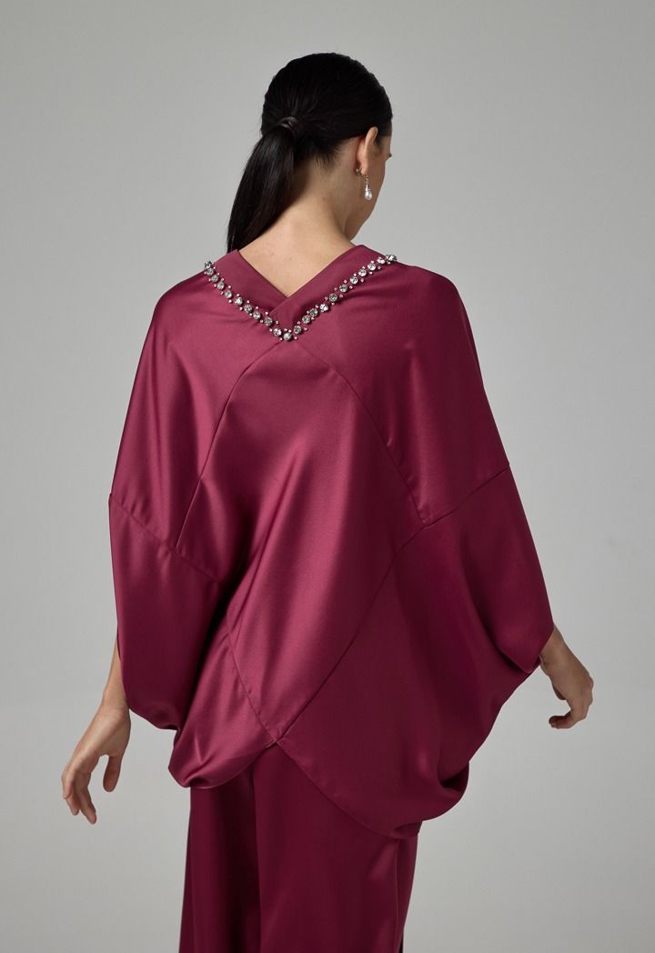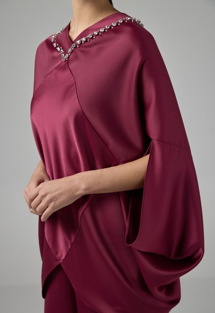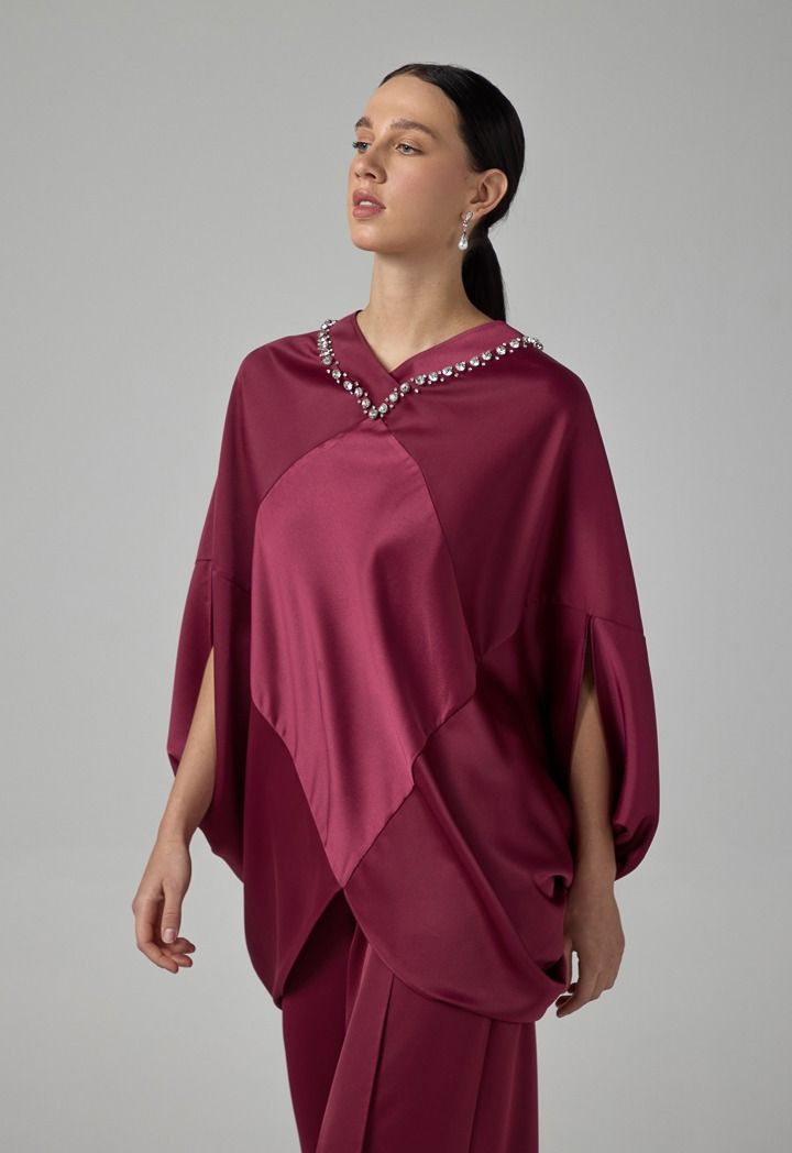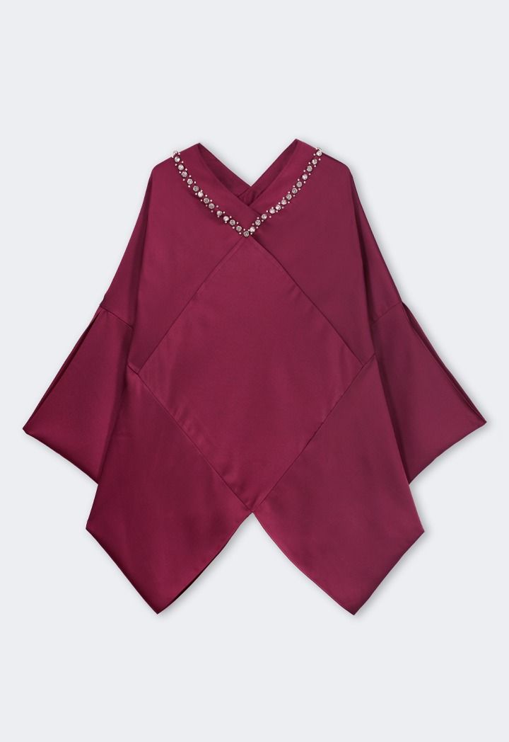 Solid Crystal Embellished Cape Blouse |