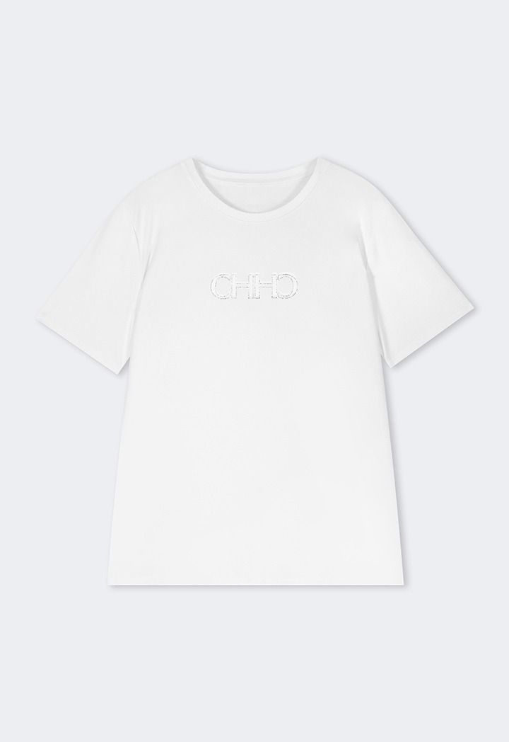 Solid Crystal Embellished Monogram T-Shirt |