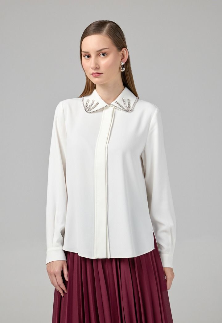 Design: Solid, Crystal Embellished, Side Slit at Hem, Box Pleat At Back