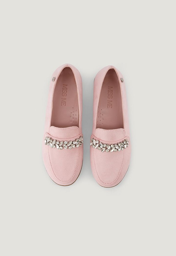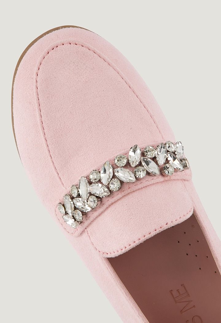 Solid Crystal Embellished Suede Loafers
